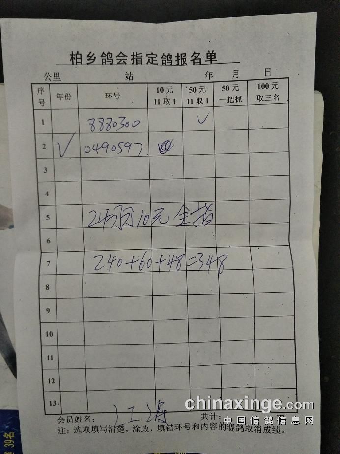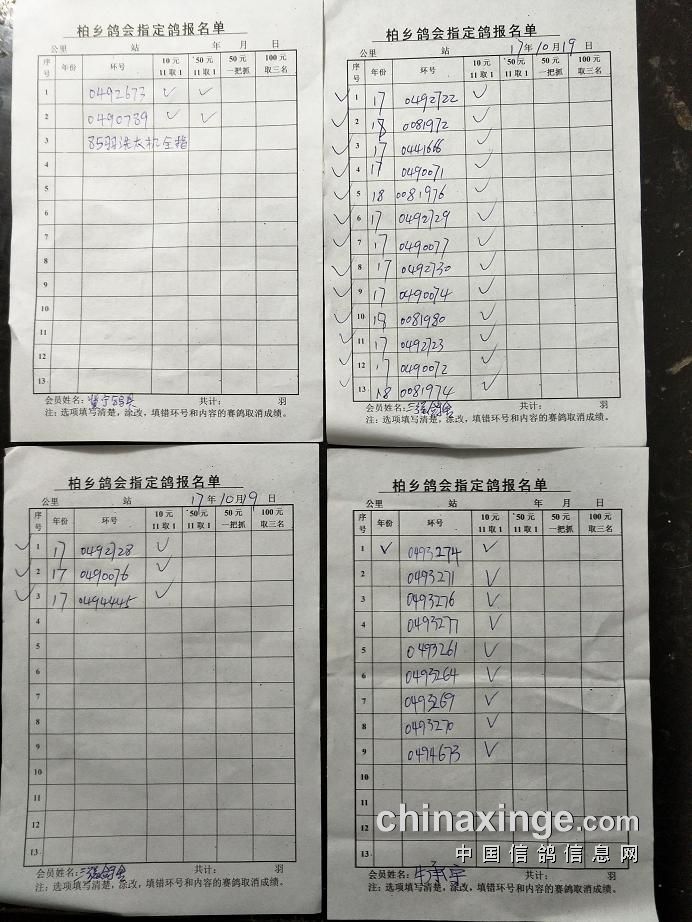柏乡鸽会千公里第七名、第八名 冯贞禄