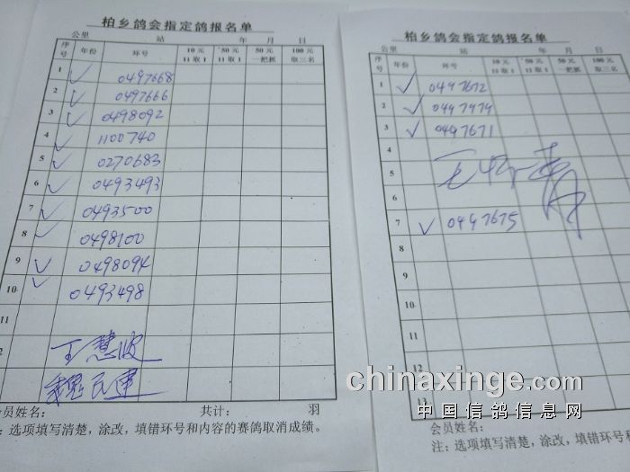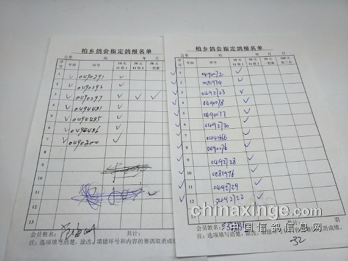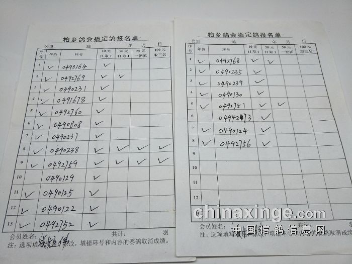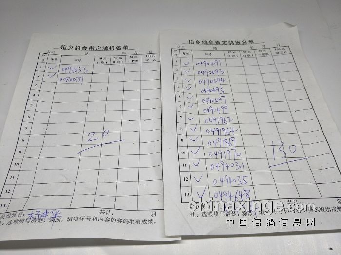 柏乡鸽会220公里指定鸽清单核对时间截止到上午9点,过时不再更改错误自负。