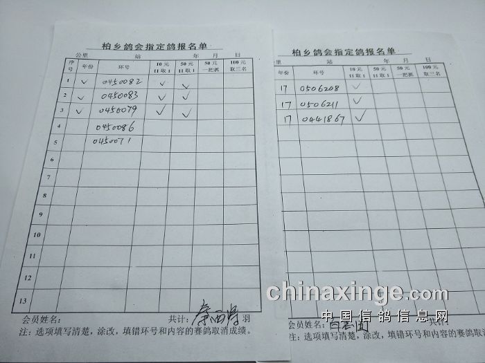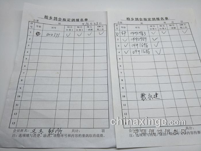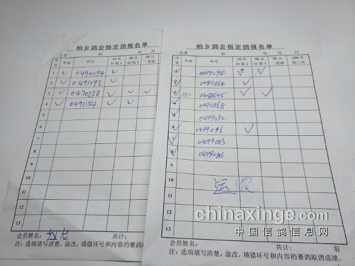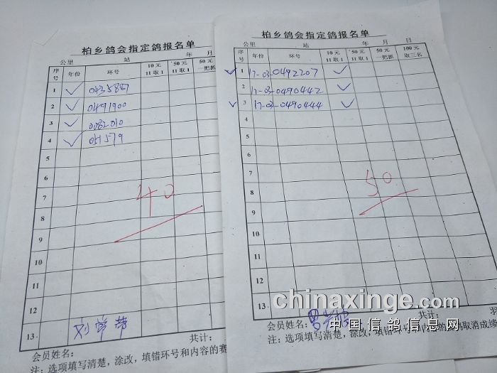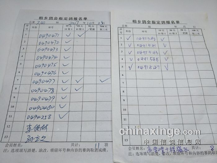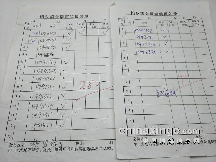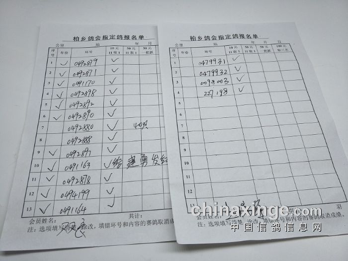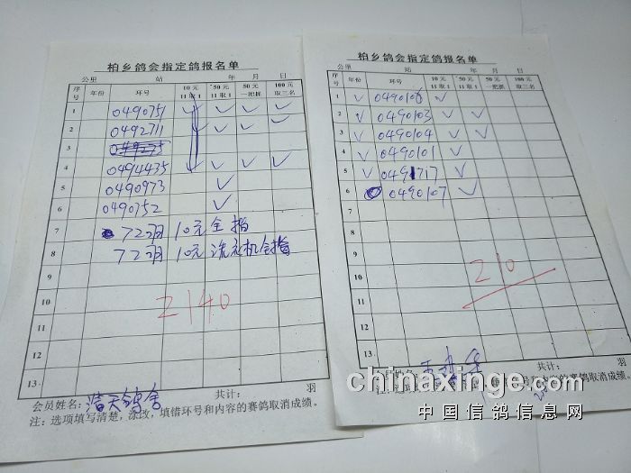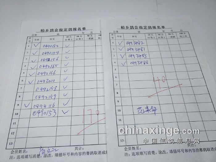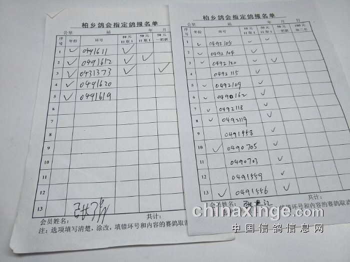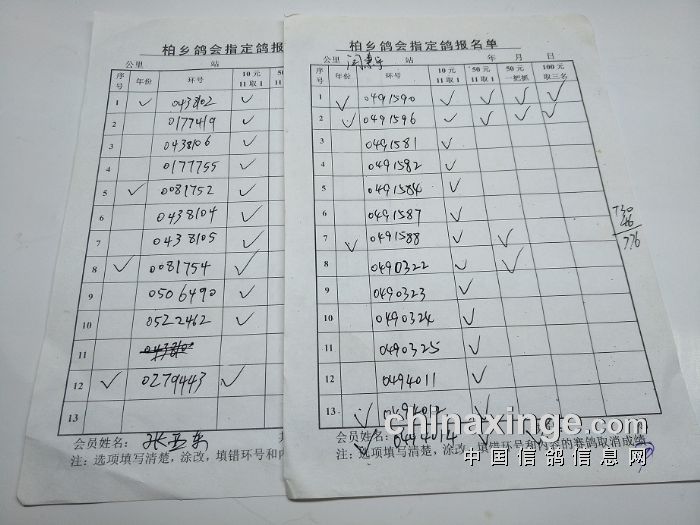 柏乡鸽会220公里指定鸽清单二,核对时间截止到上午9点,过时不再更改,错误自负