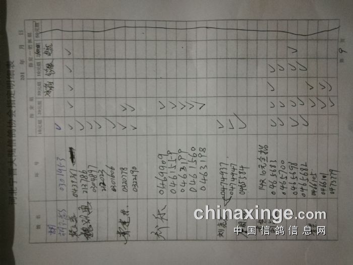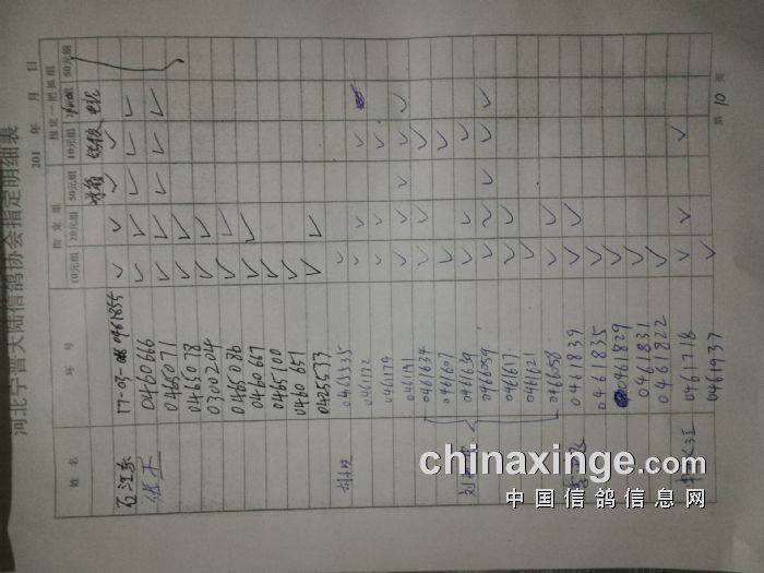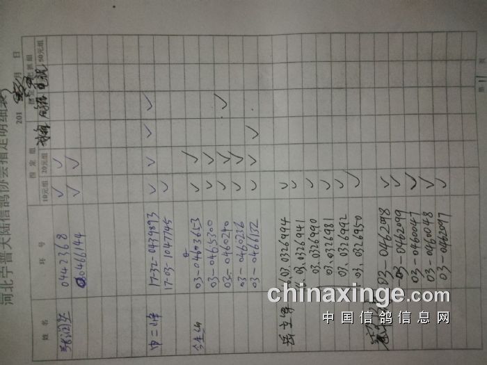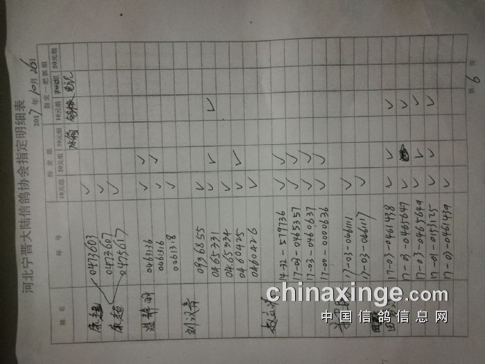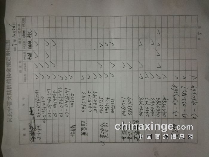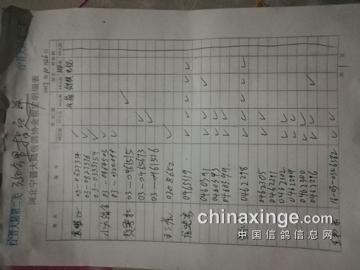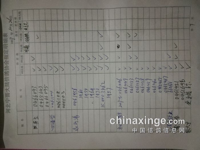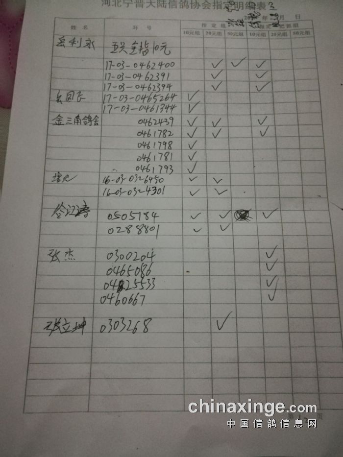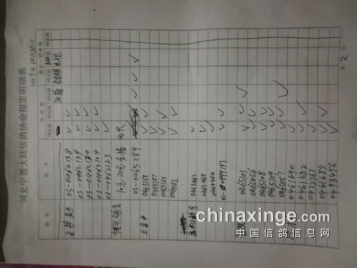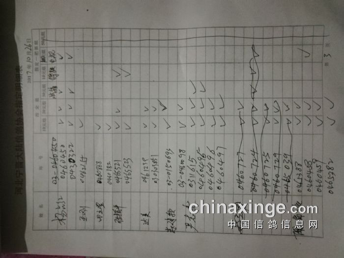 宁晋县大陆信鸽协会2017年秋350公里指定清单