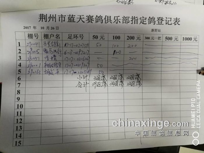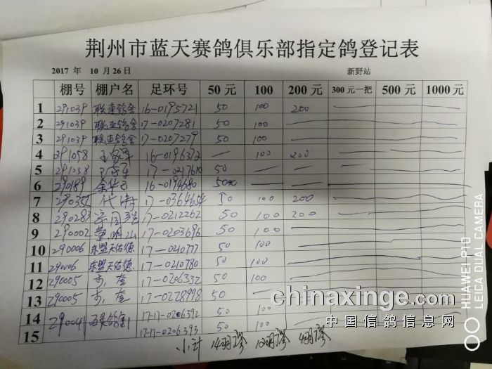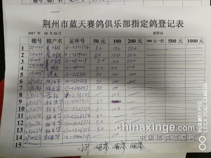2017年10月27日260公里新野站向传炎先生70大寿杯比赛指定鸽明细