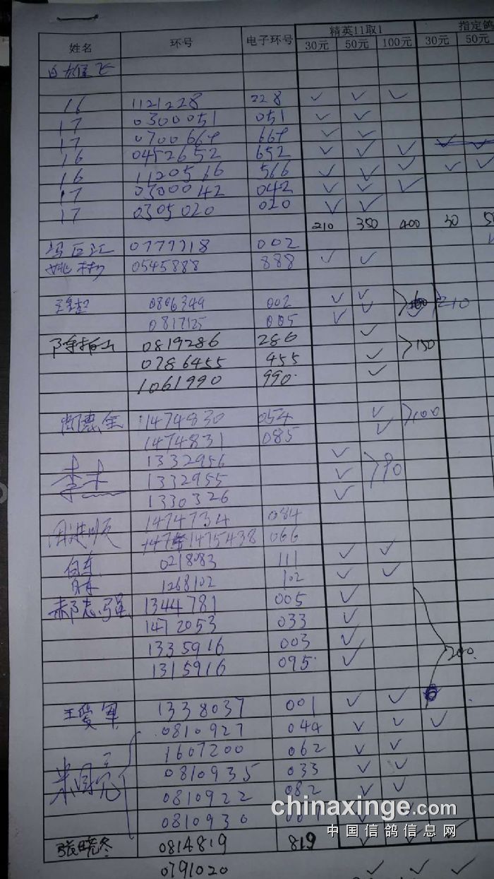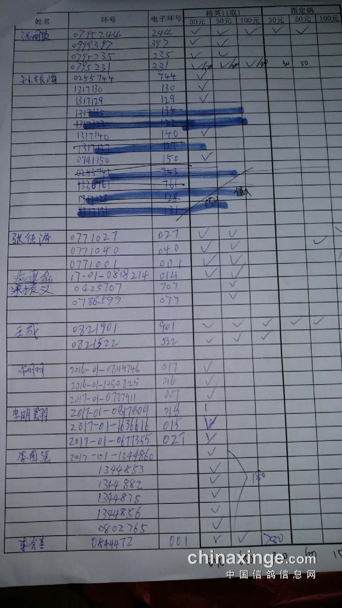 25年大兴“金洲杯”100环一关有效归巢(按人名)