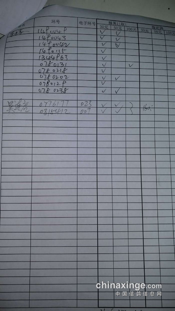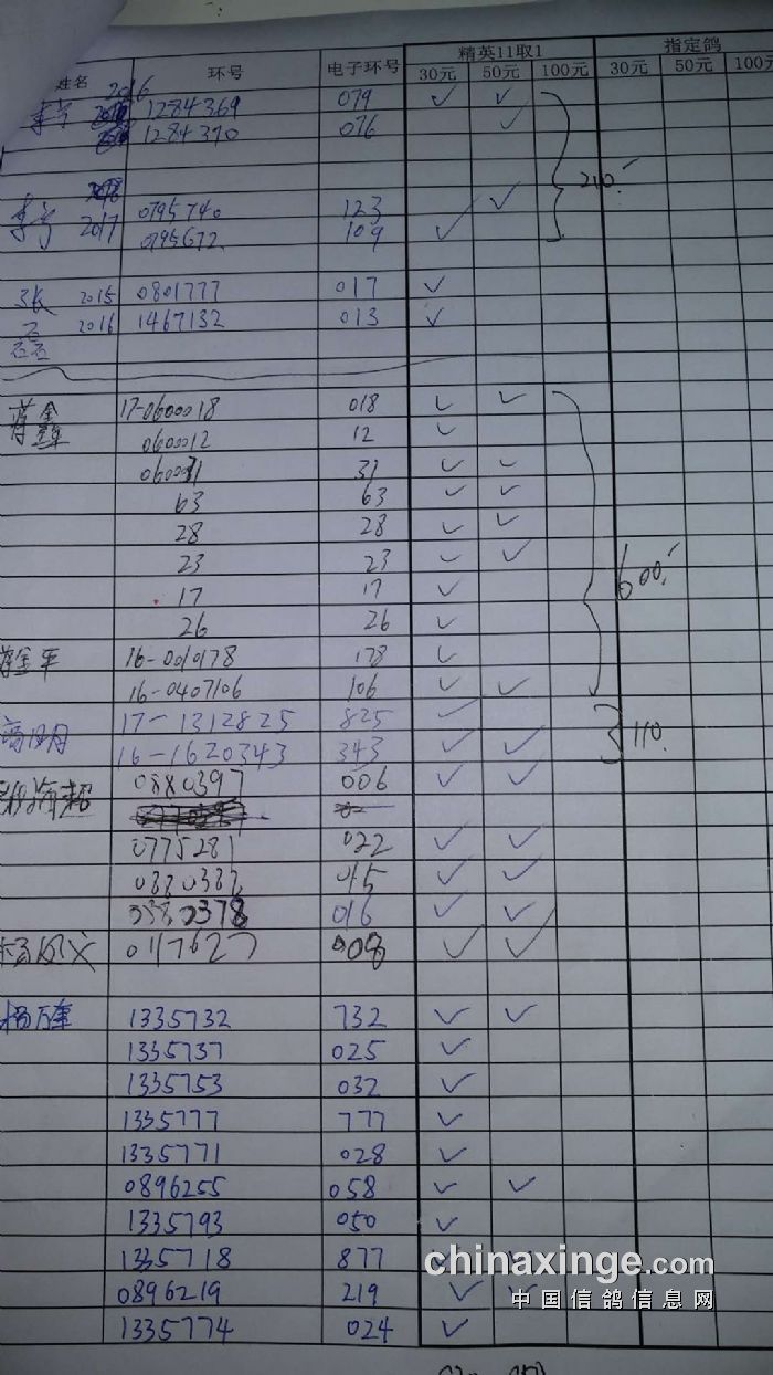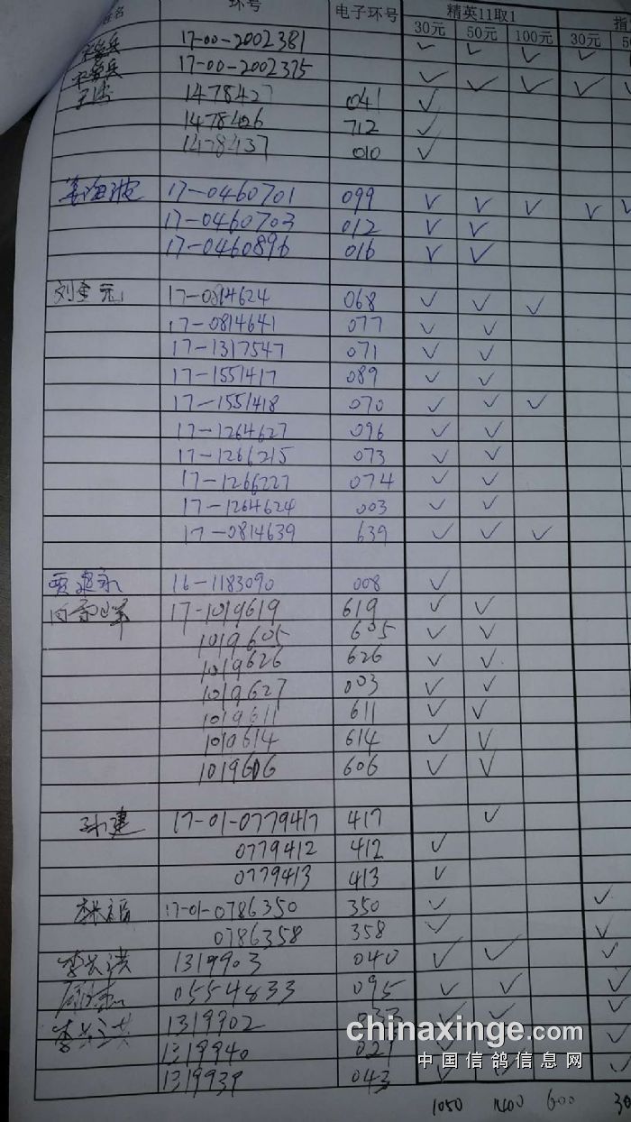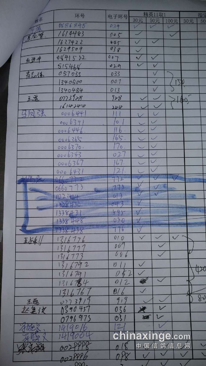 25年大兴“金洲杯”千元环一关有效归巢(按棚号)