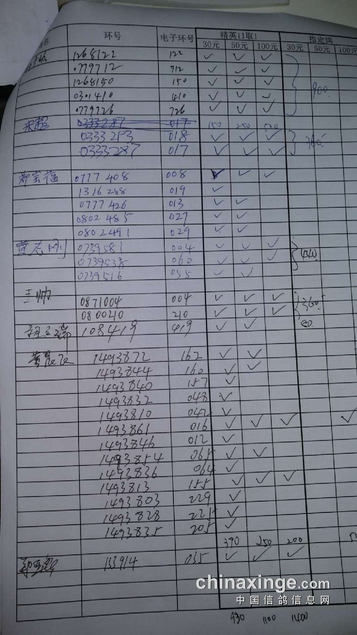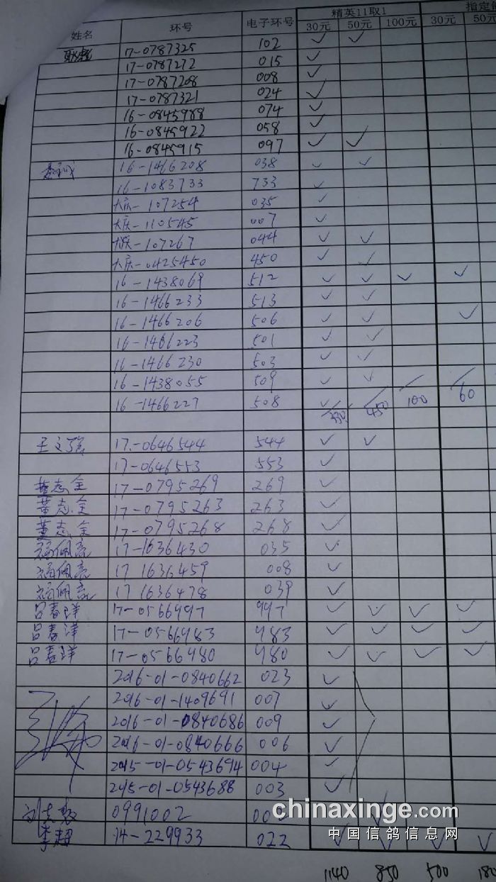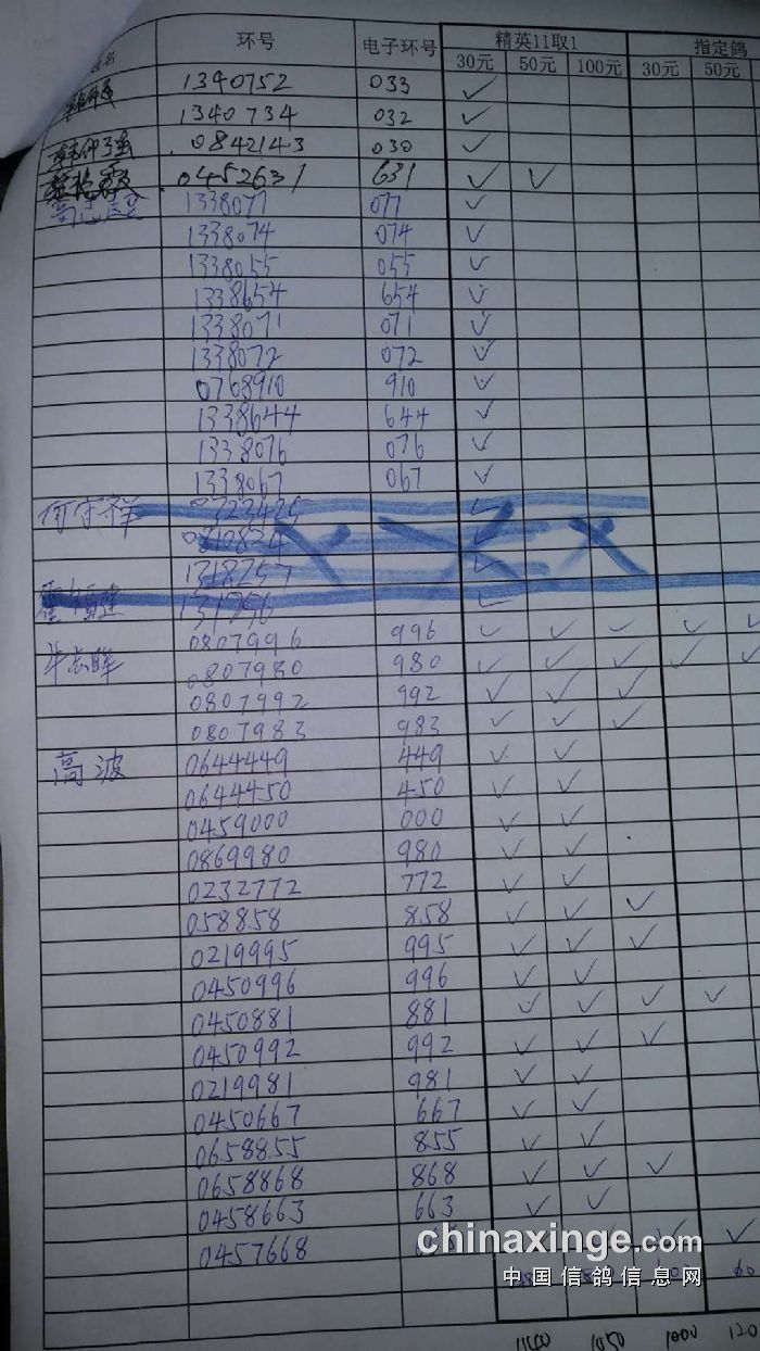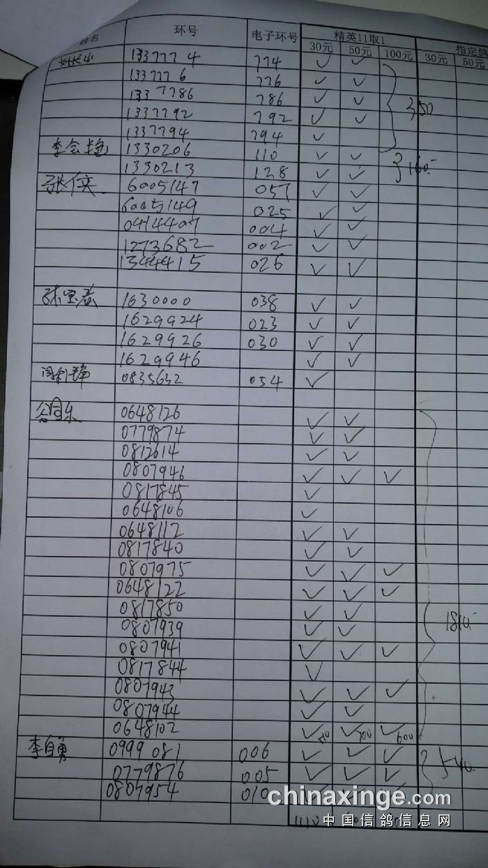 25年大兴“金洲杯”千元环一关有效归巢(按棚号)