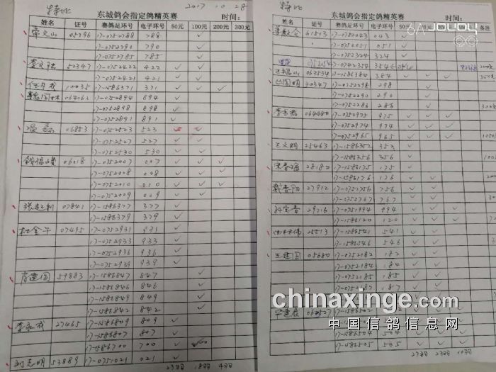 50元特比环精英集鸽348羽 录取32名 尾名300元