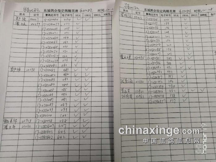 100元特比环精英集鸽337羽 录取31名 尾名600元