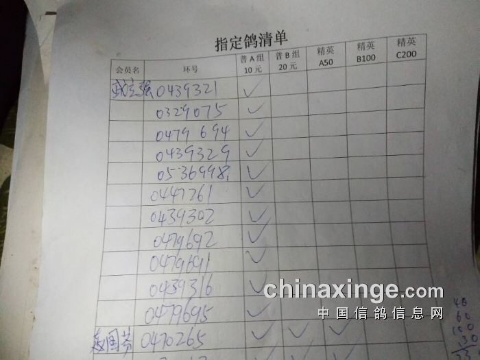 大曹庄鸽会第一关500公里项城30米 精英清单
