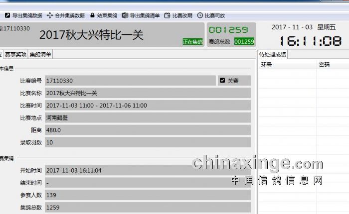 25年大兴“金洲杯”千元环一关有效归巢(按棚号)