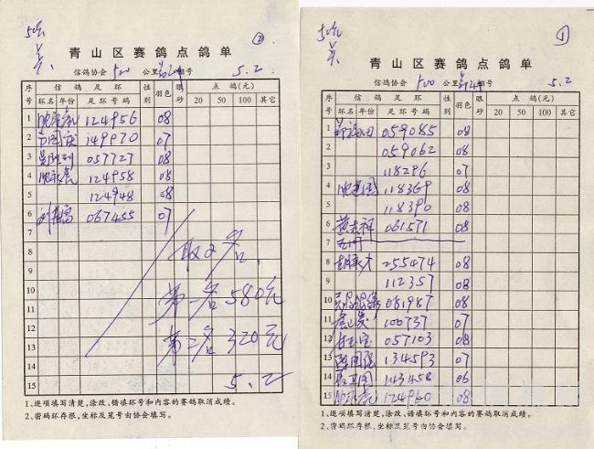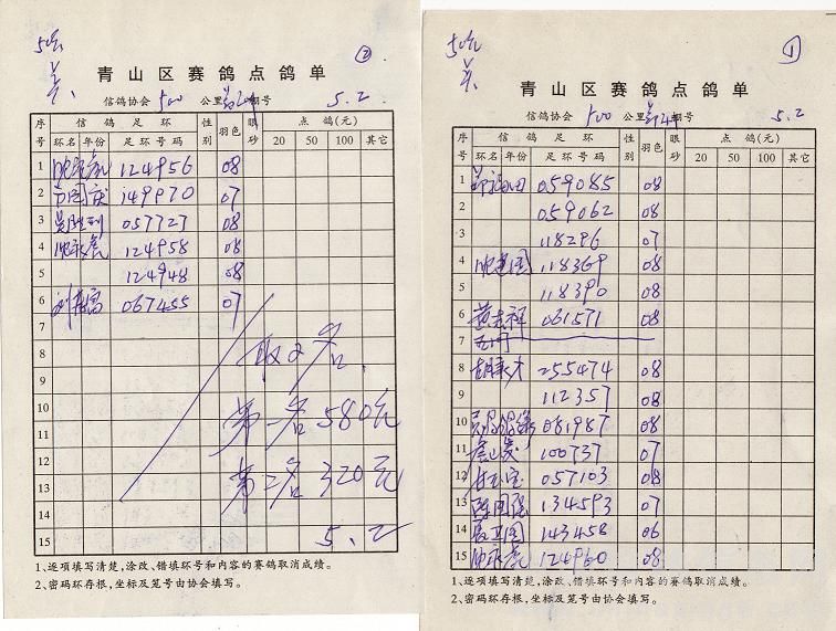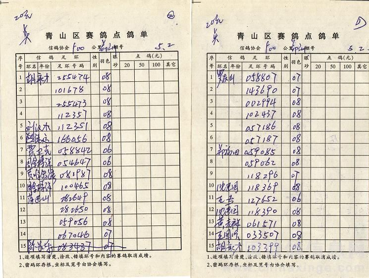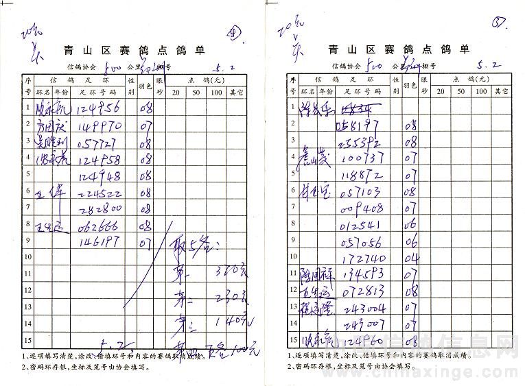 武汉市洪山区信鸽协会2009年5月2日480公里郑州竞赛指定鸽清单