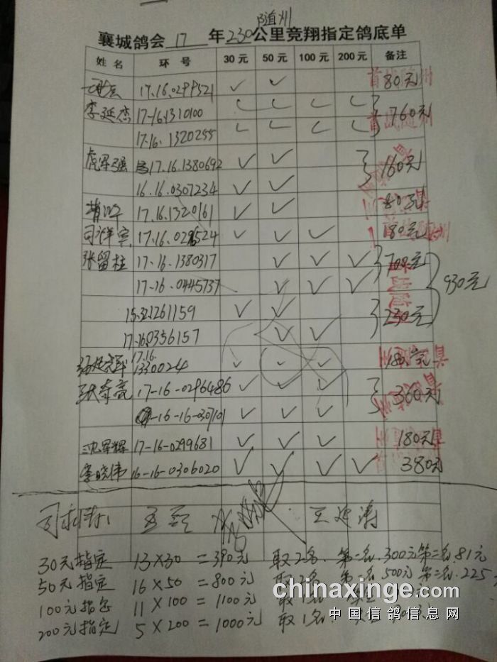 襄城信鸽协会25年秋季第三关510公里湖南南县比赛集鸽清单
