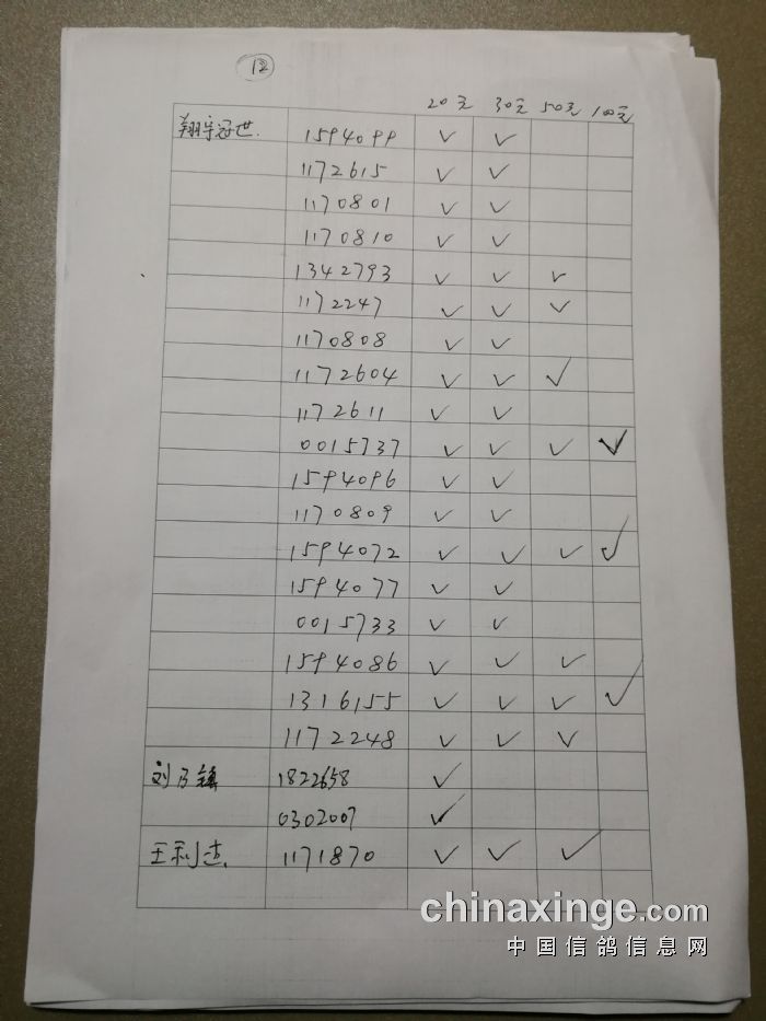 2012年秋季东线河北省幼鸽冠军赛前10名风采
