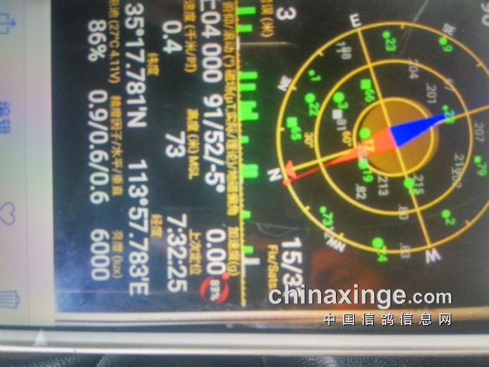 西城鸽会11月5号500-1000特比环比赛,今早7:27分在河南新乡开笼,天气晴,微风,东经113。57.783、北纬35。17.781,信鸽走势良好,祝鸽友取得好成绩。