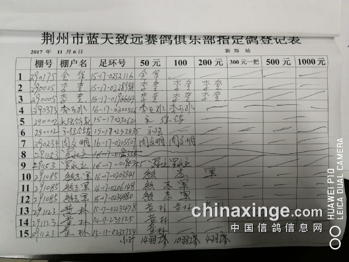 2017年11月7日480公里新郑站纪南坊杯比赛指定鸽明细