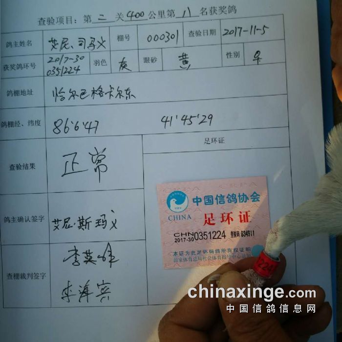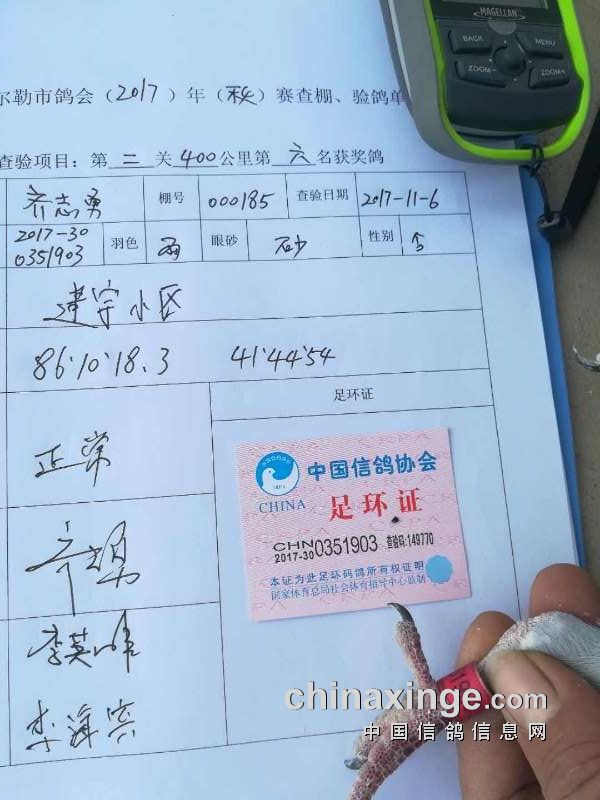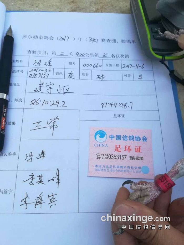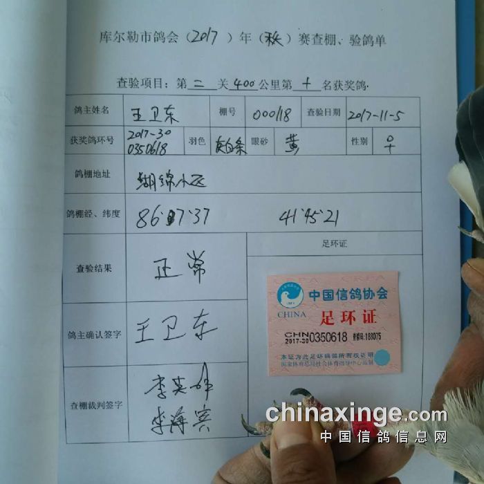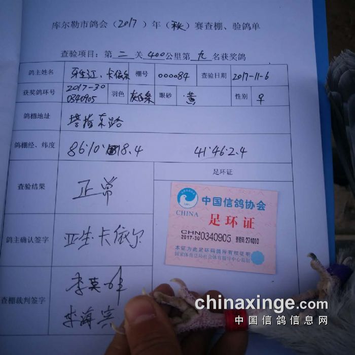 2017年秋五关鸽王第二关400公里6-10名验棚照片