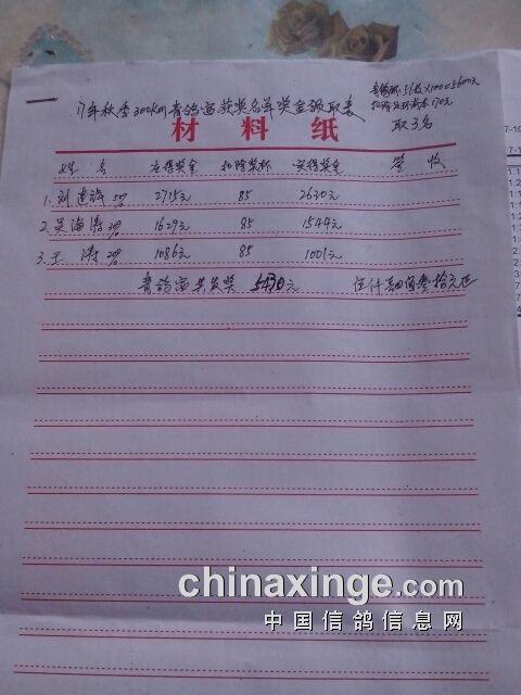 2017年萍乡市信鸽协会秋季各项赛事成绩图表