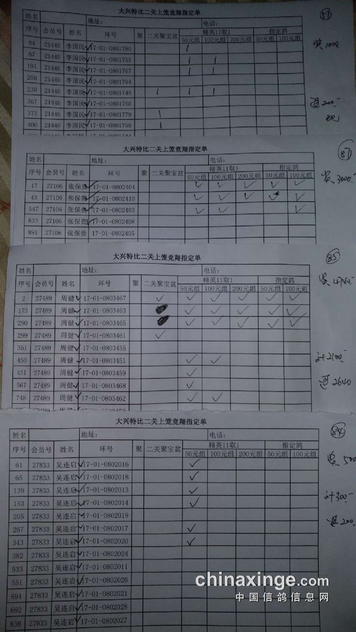 25年大兴“金洲杯”100环一关有效归巢(按人名)
