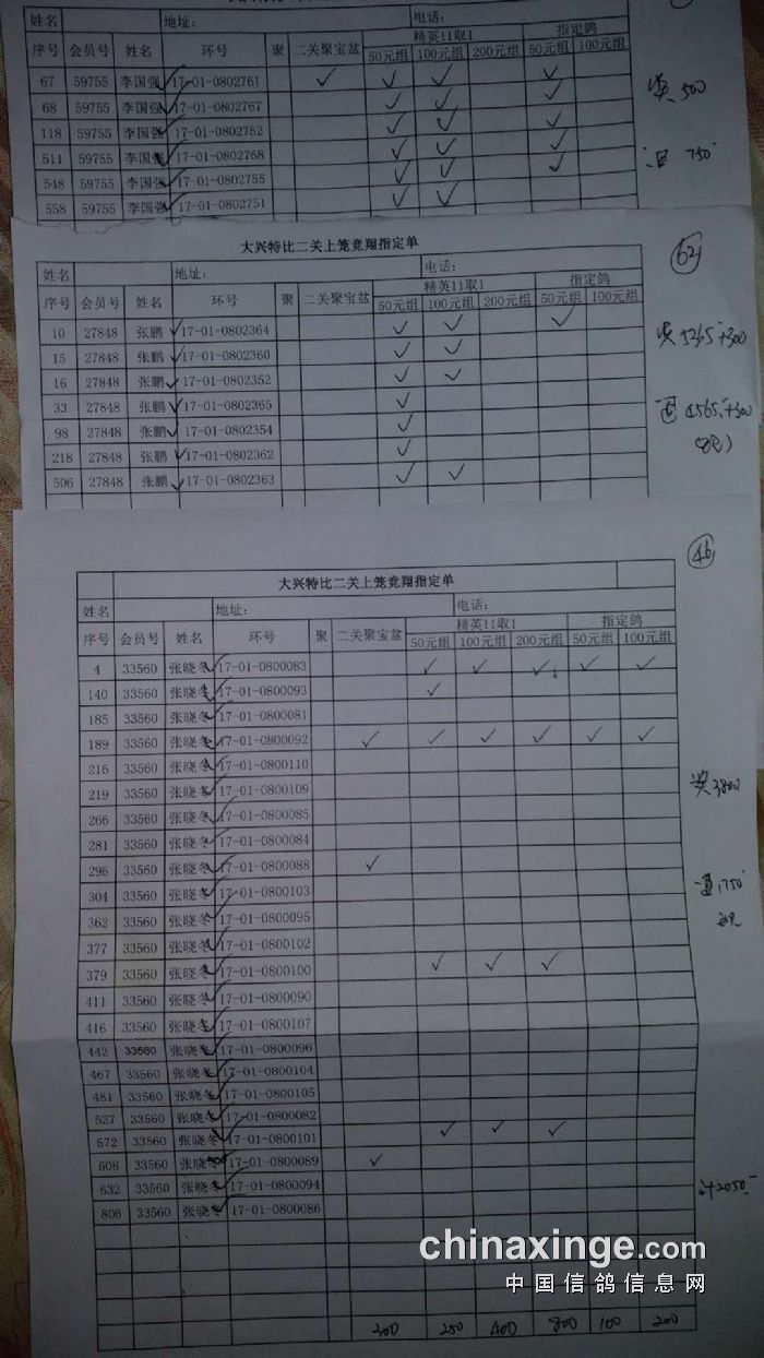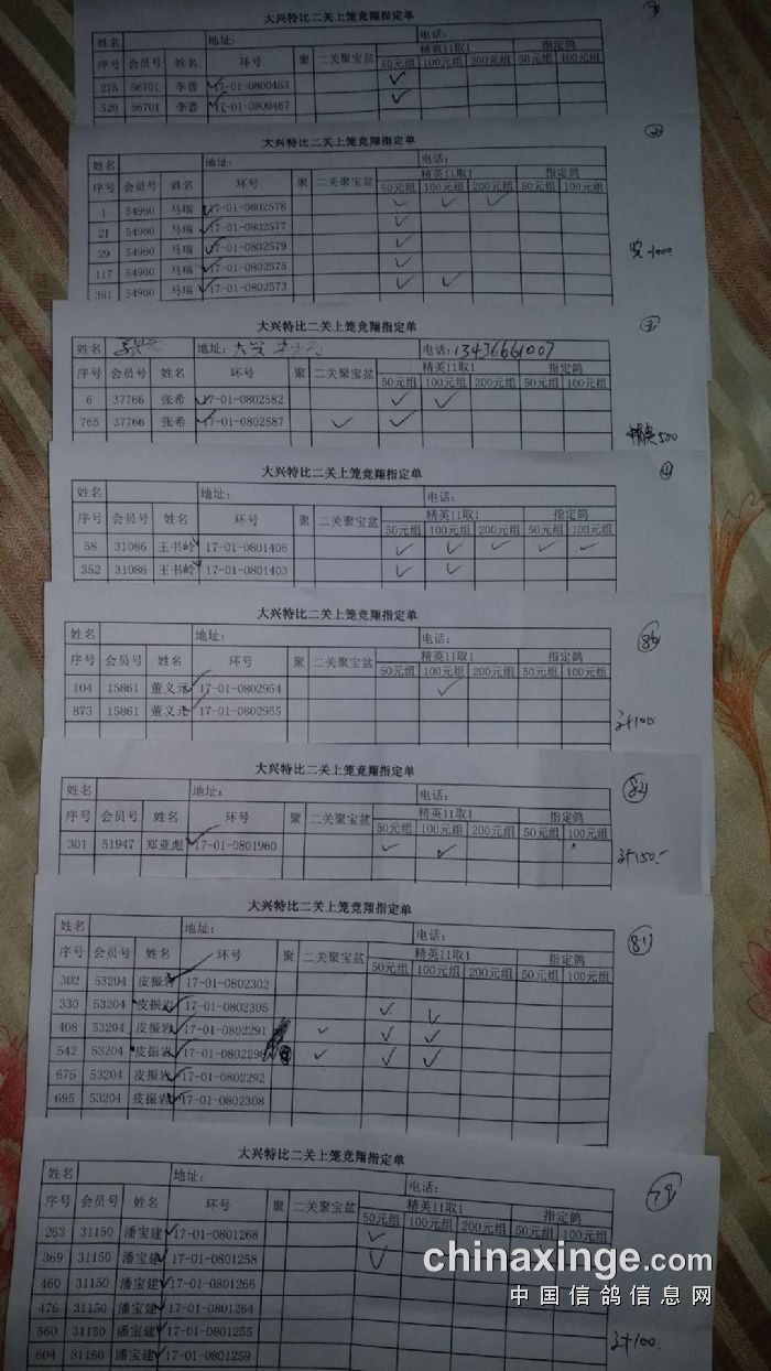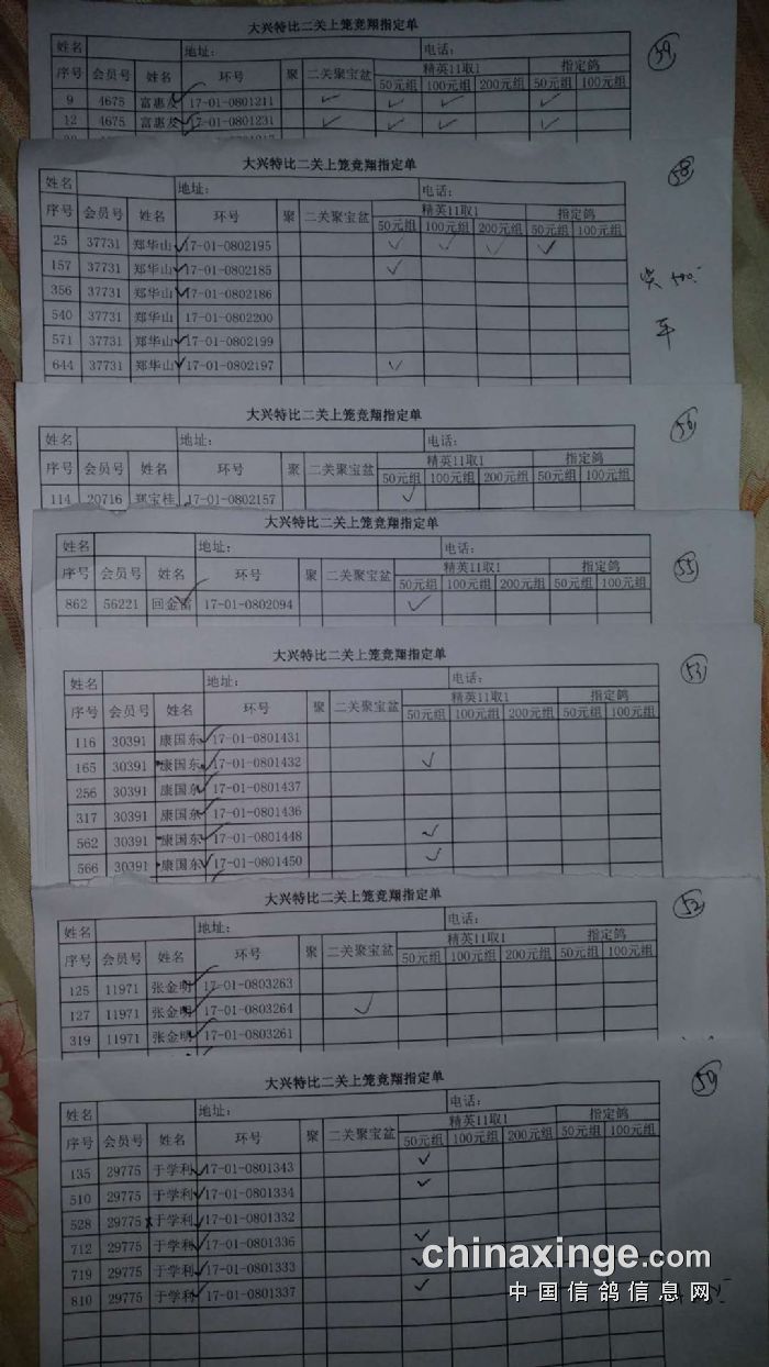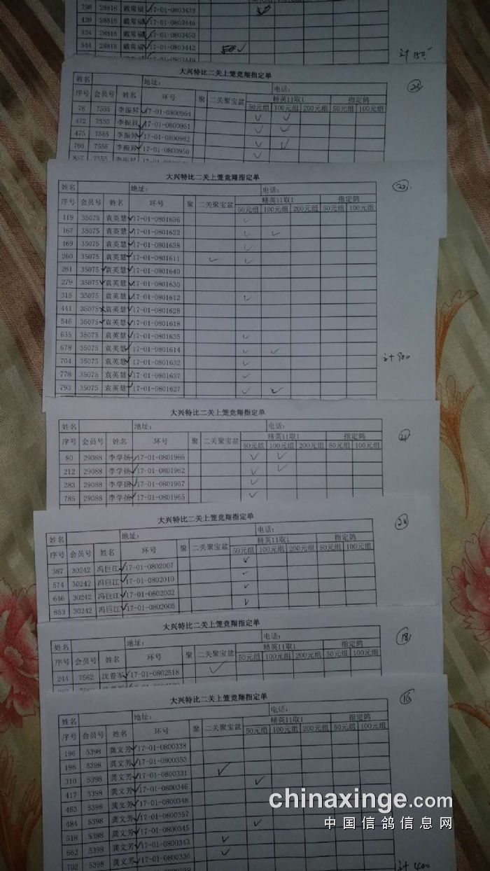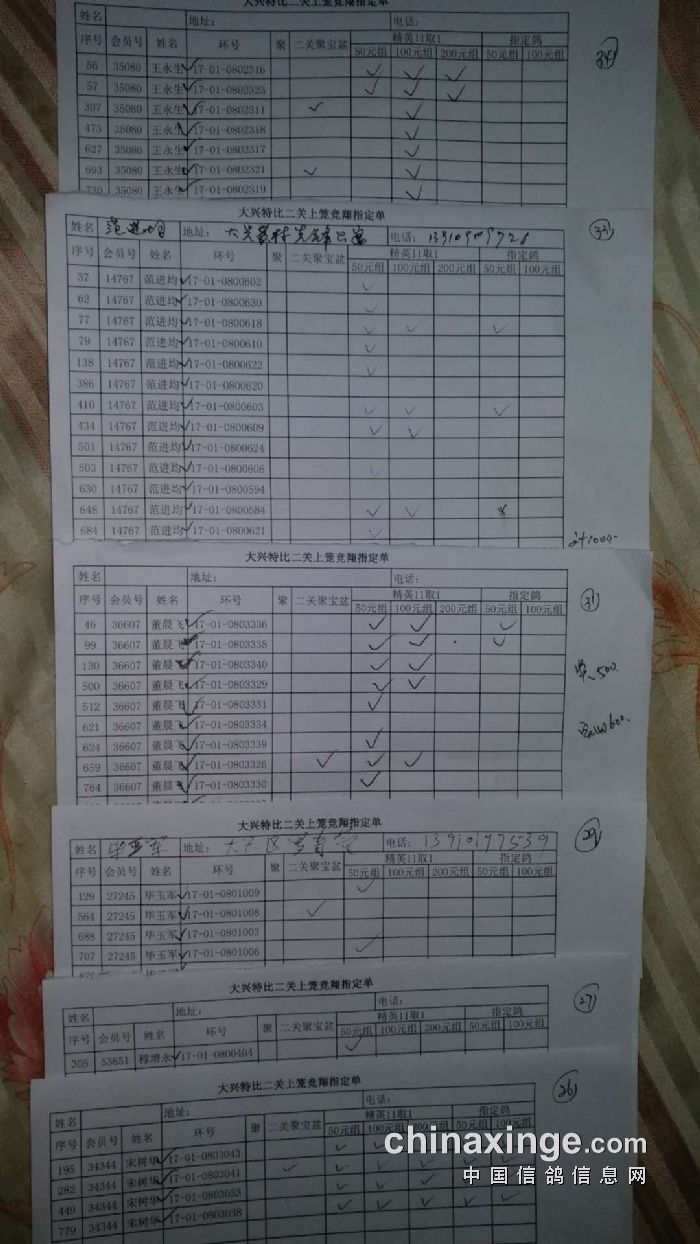 25年大兴“金洲杯”千元环一关有效归巢(按棚号)