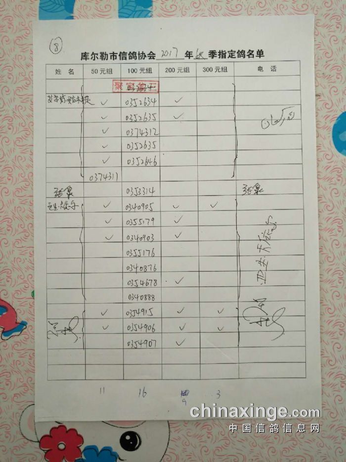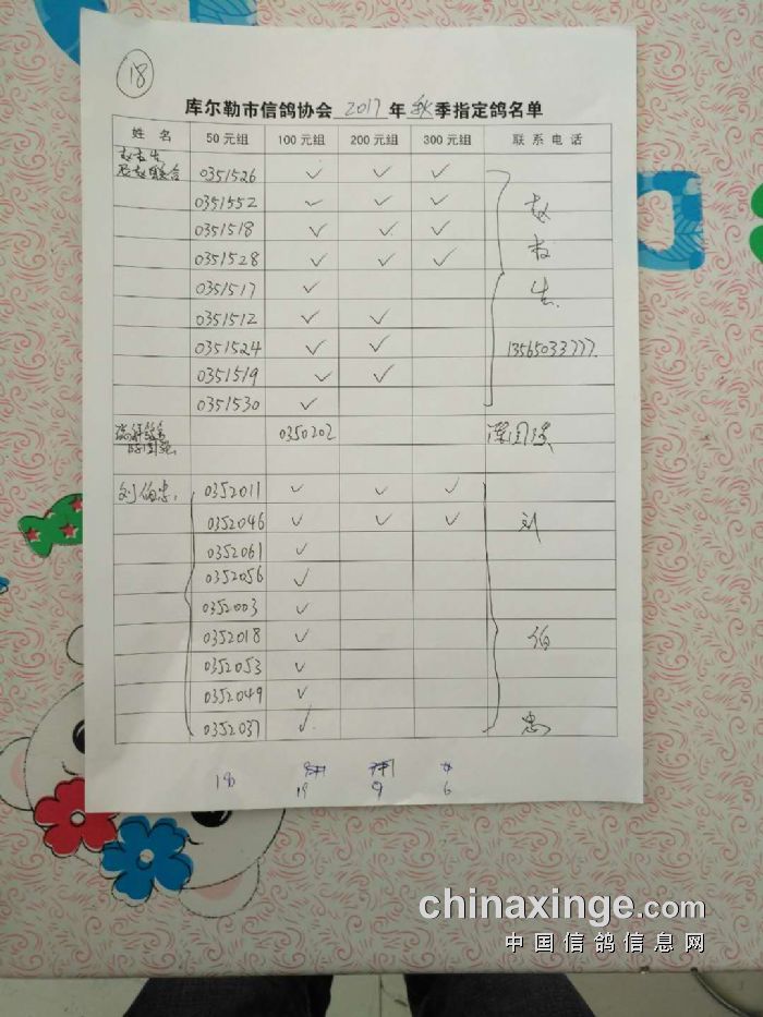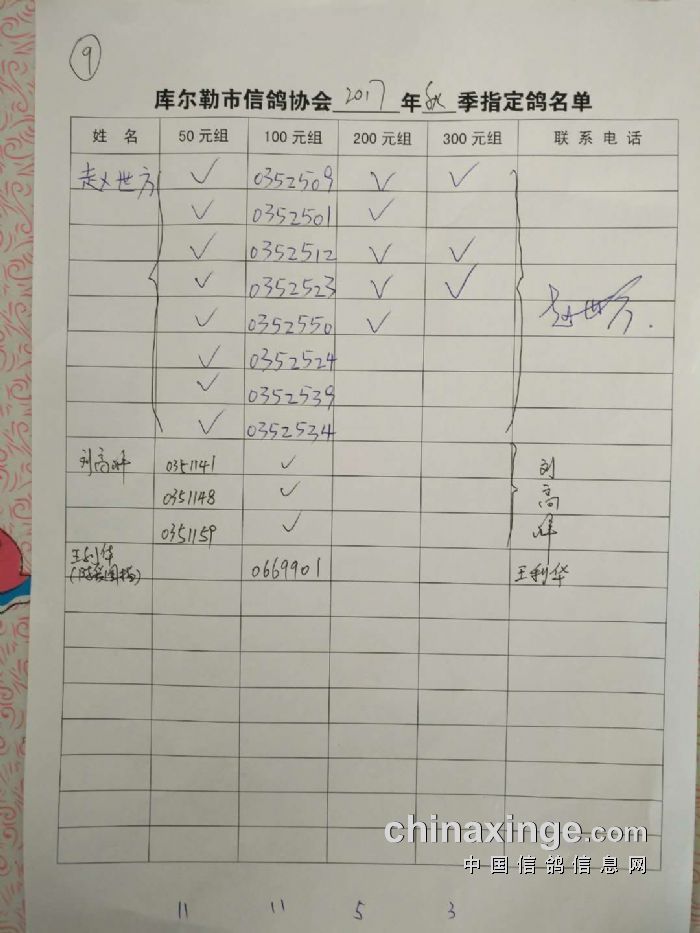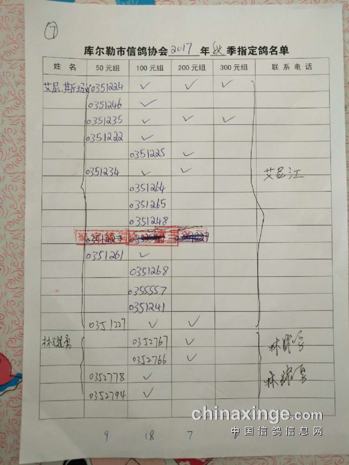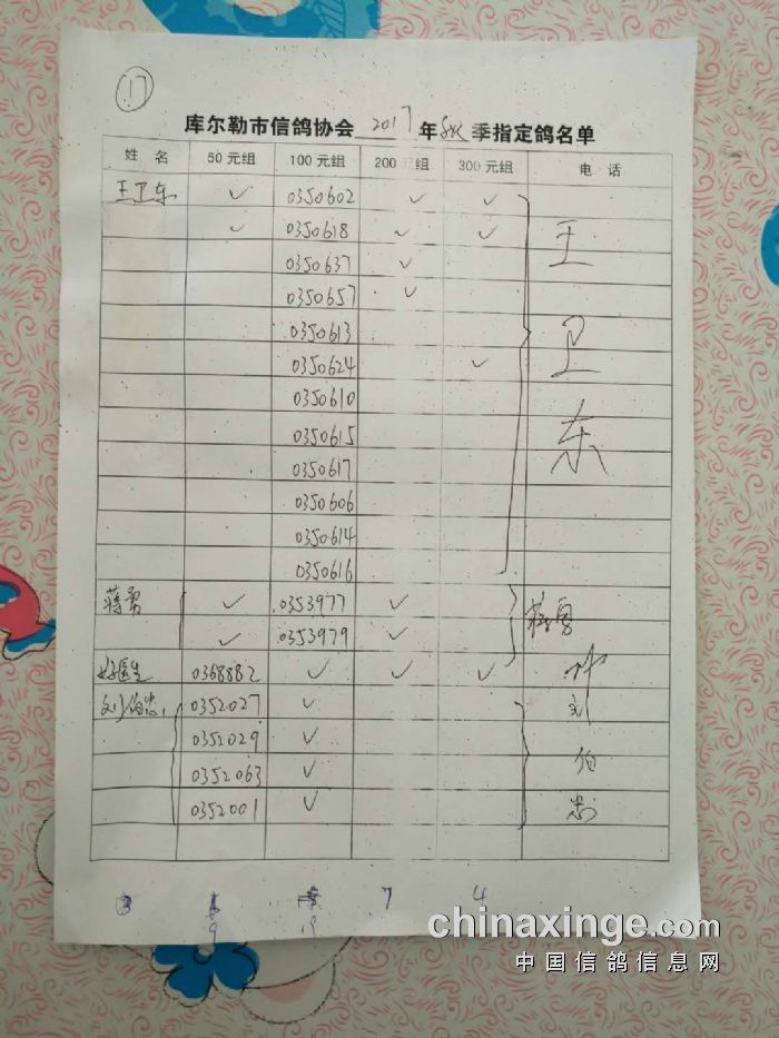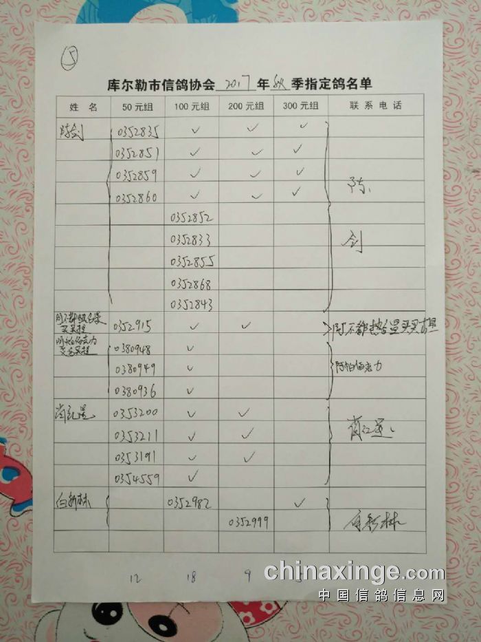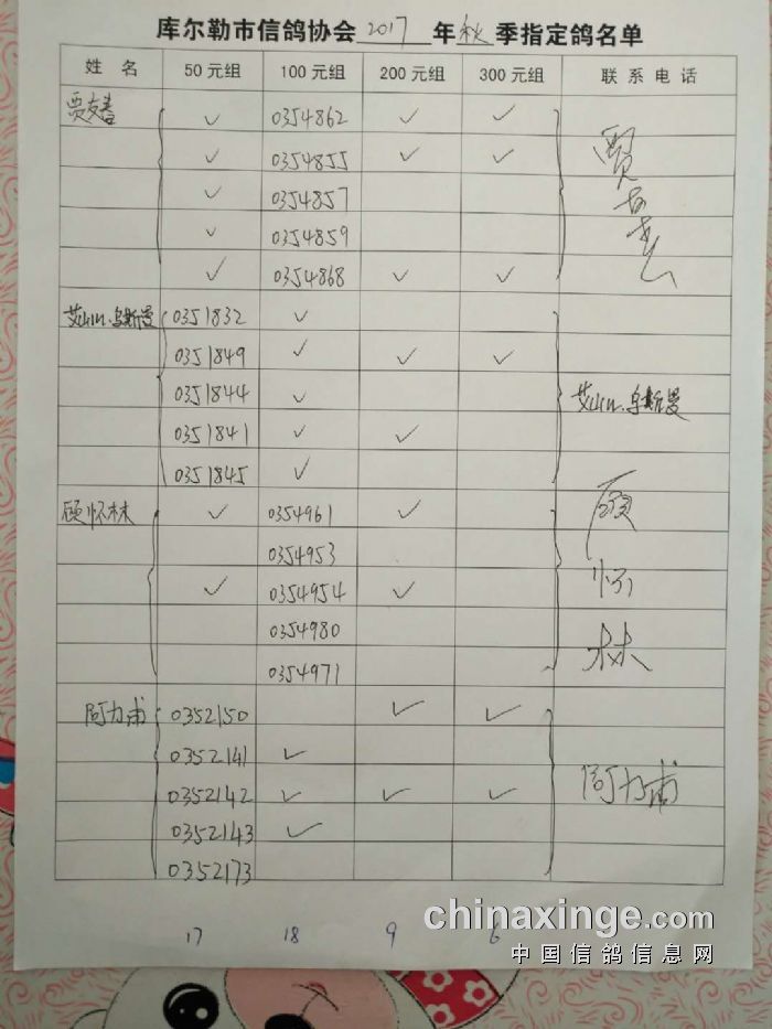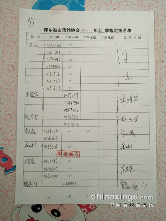 2017年秋五关鸽五第三关500公里指定鸽名单(50、100、200、300)