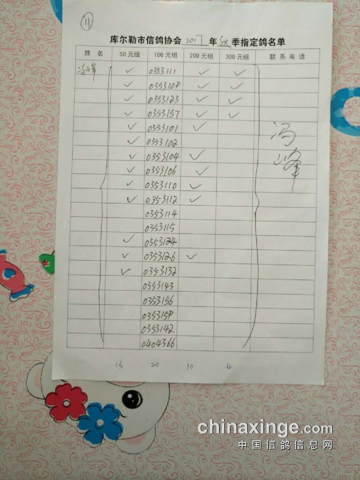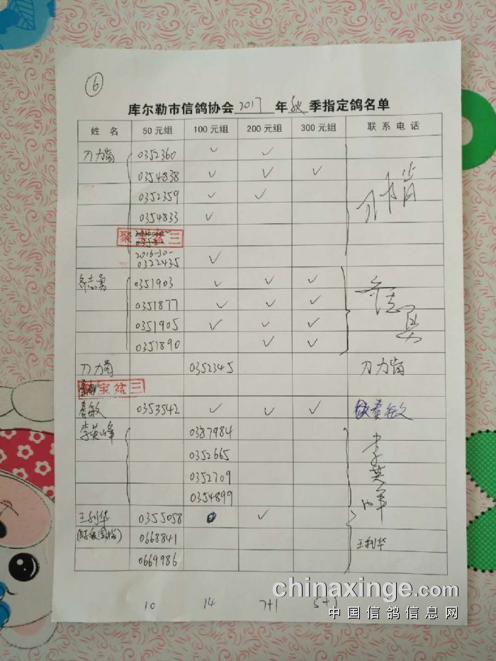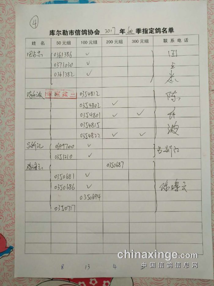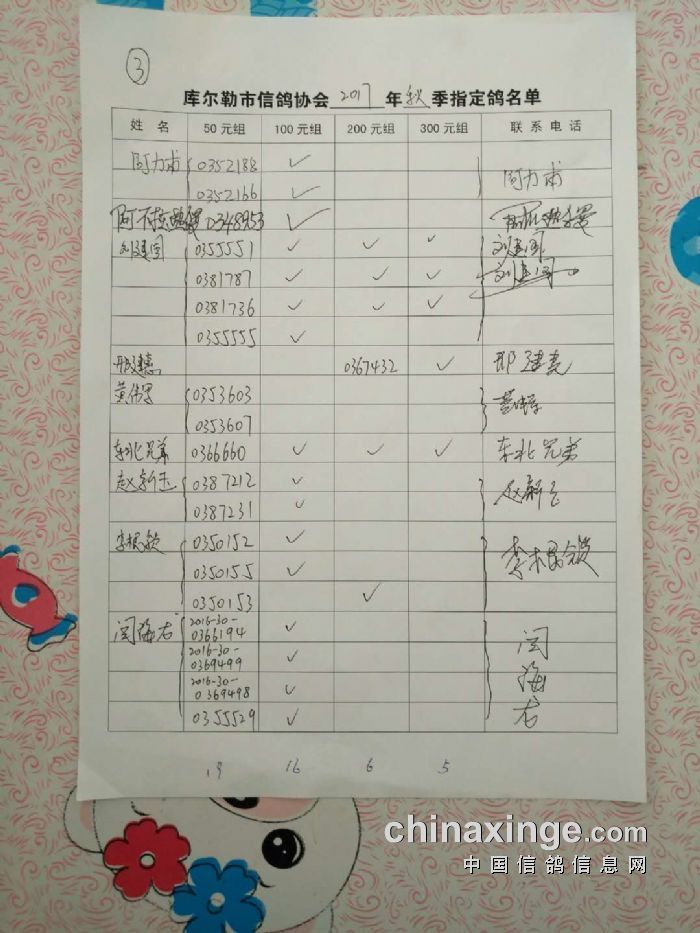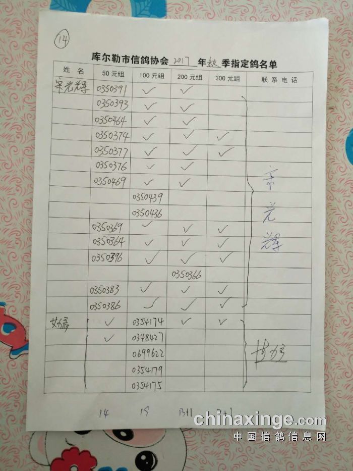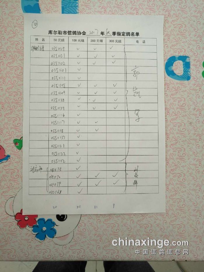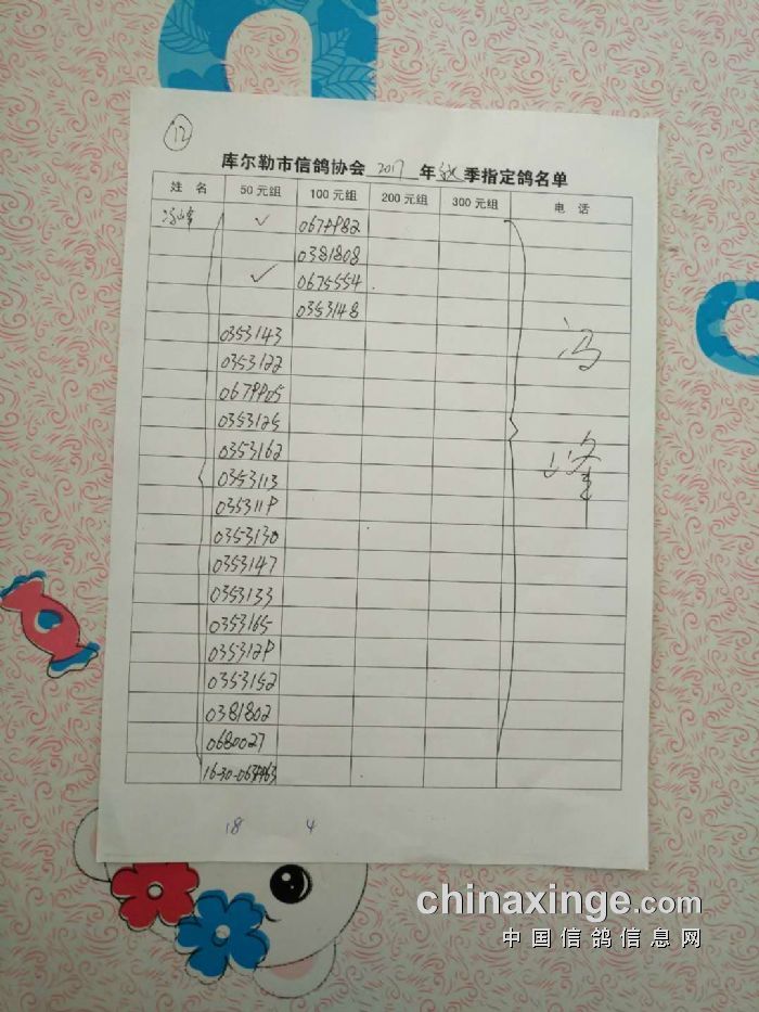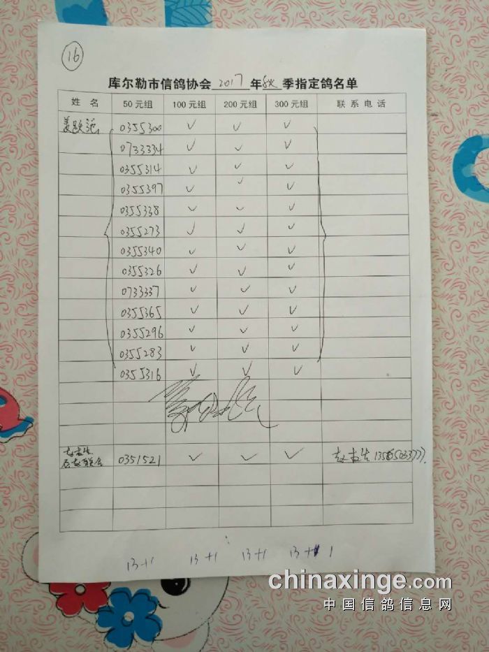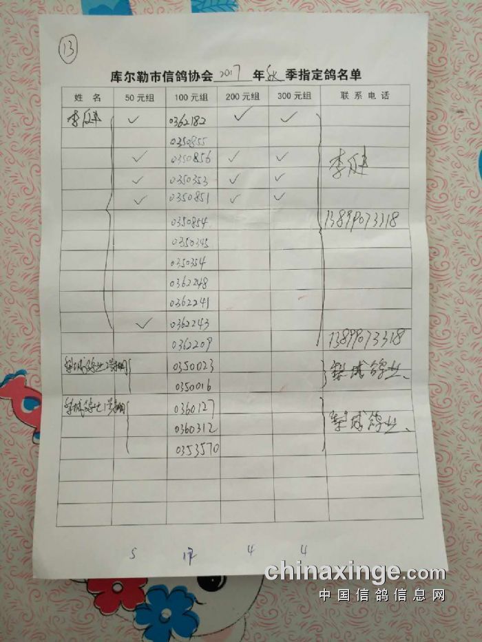 2017年秋五关鸽五第三关500公里指定鸽名单(50、100、200、300)