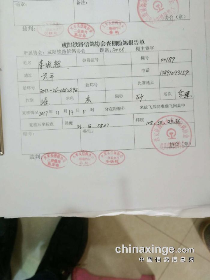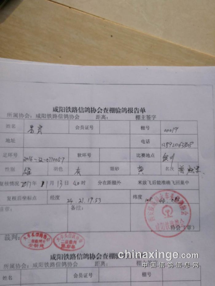咸阳铁路信鸽协会2024年秋季第二关指定成绩