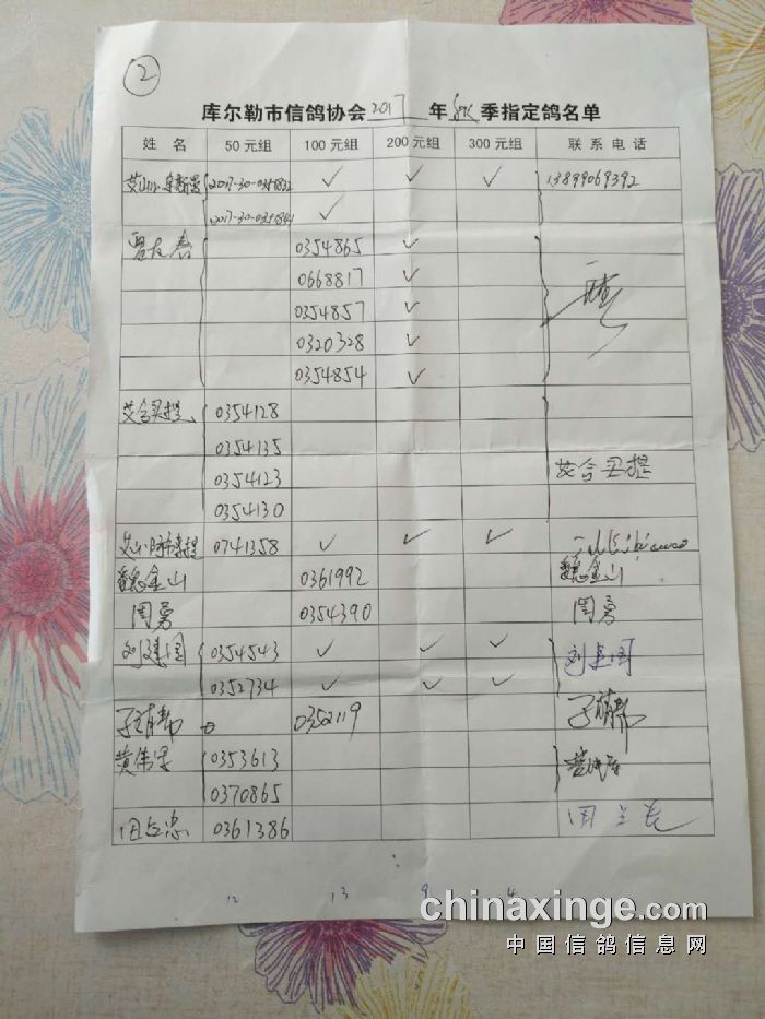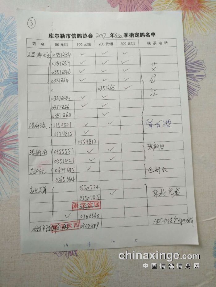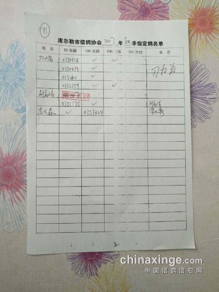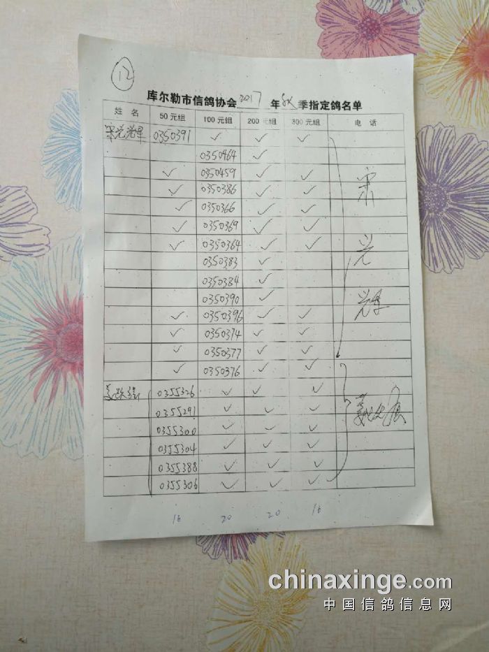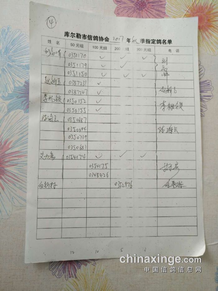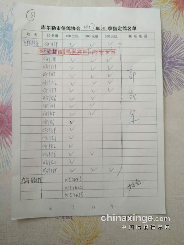 2017年秋季五关鸽王第四关530公里指定鸽名单(50、100、200、300)