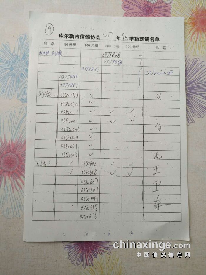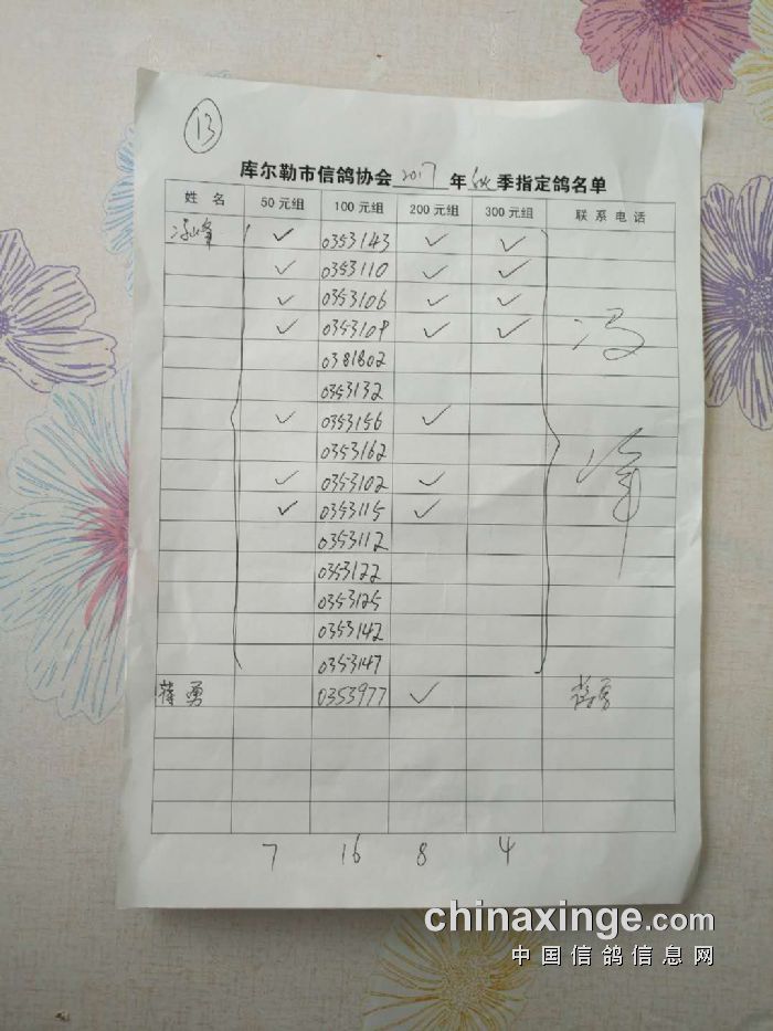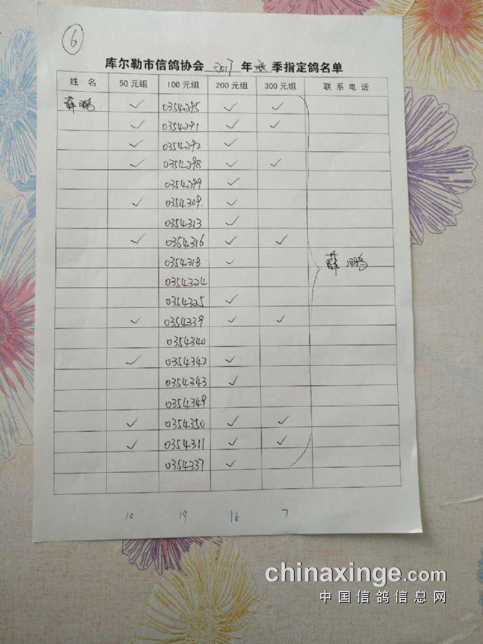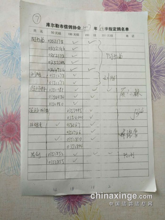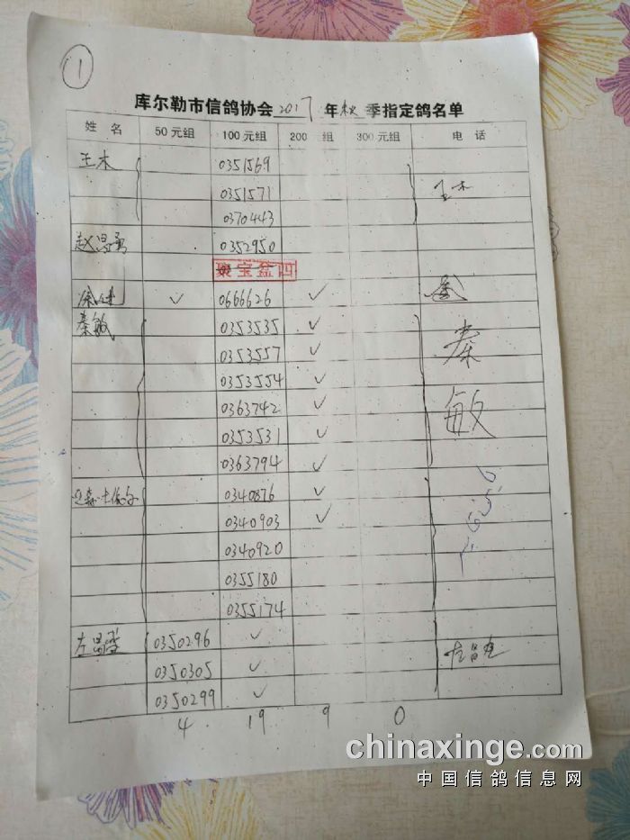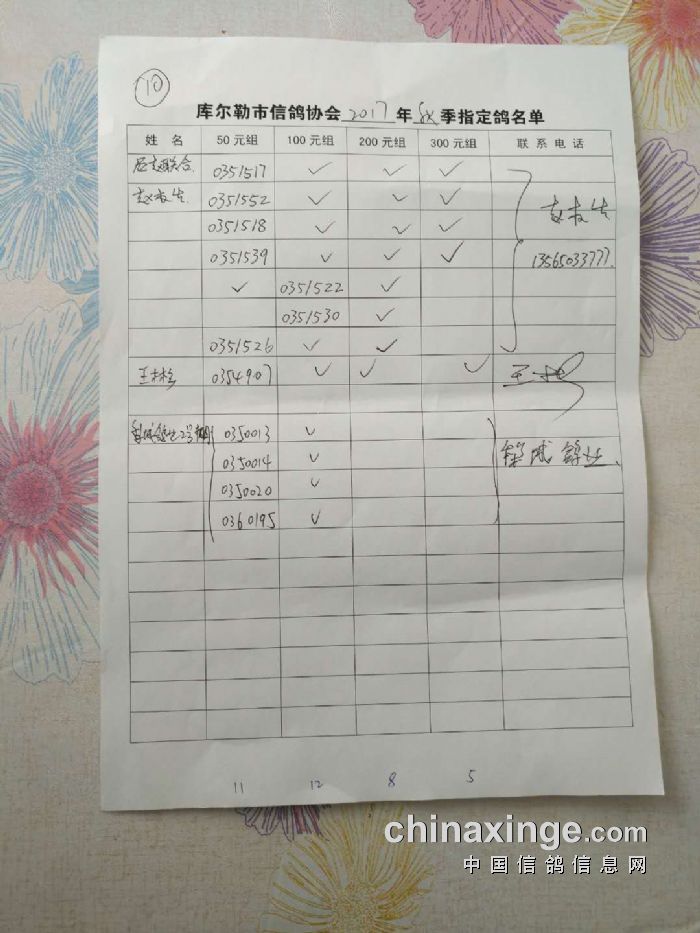 2017年秋季五关鸽王第四关530公里指定鸽名单(50、100、200、300)