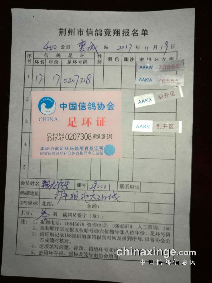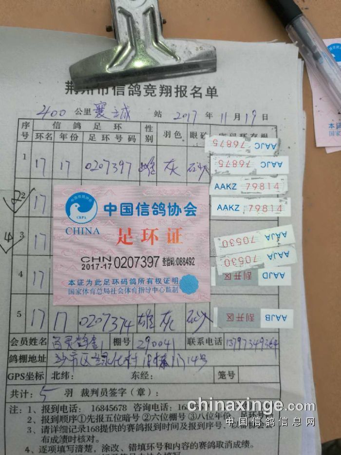 2017年11月26日480公里新郑站年度王中王比赛集鸽清单