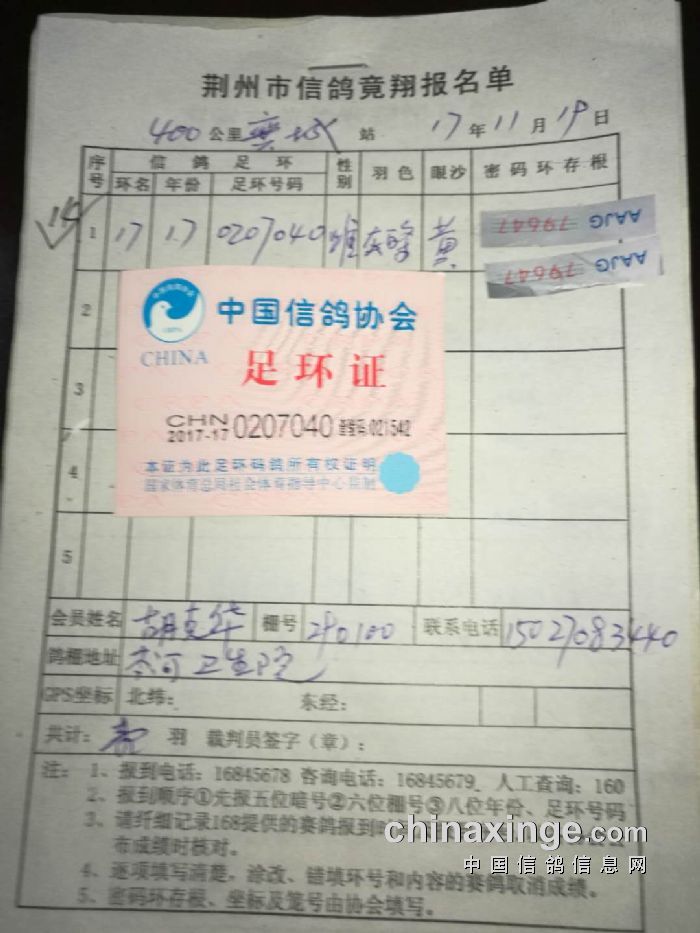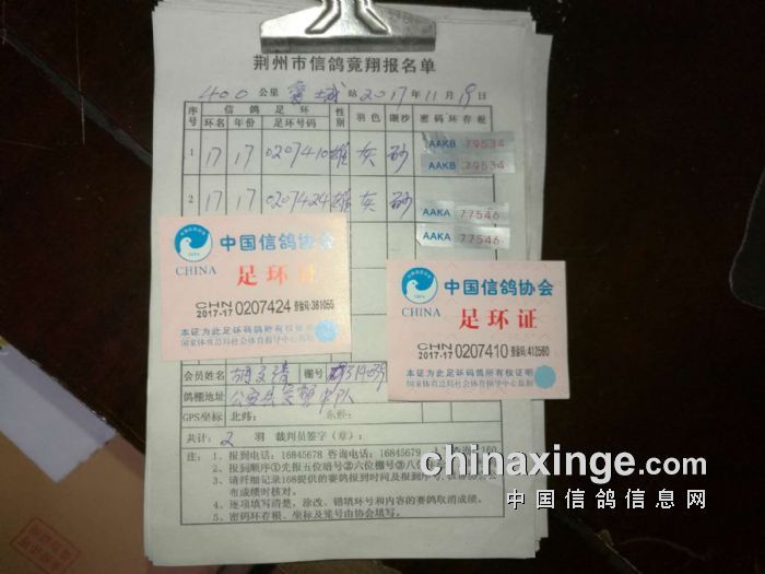 2017年11月22日全国千公里联赛廊坊站比赛集鸽清单