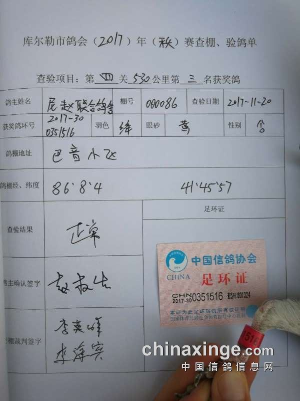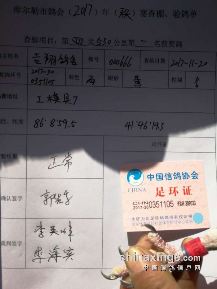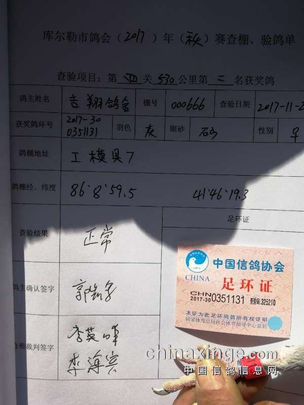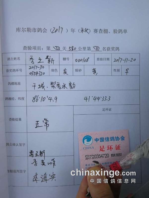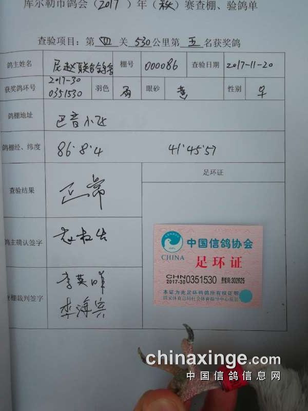 2017年秋季五关鸽王第四关530公里1-5名验棚照片