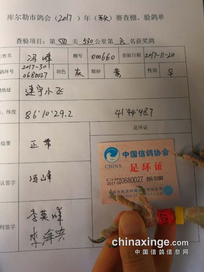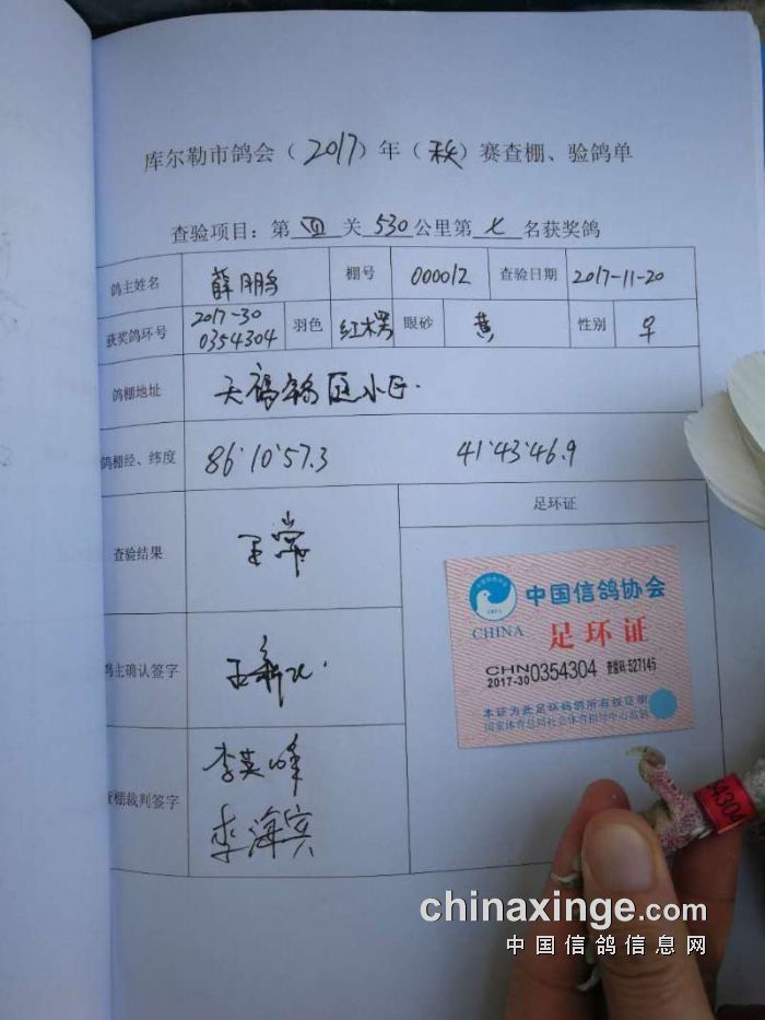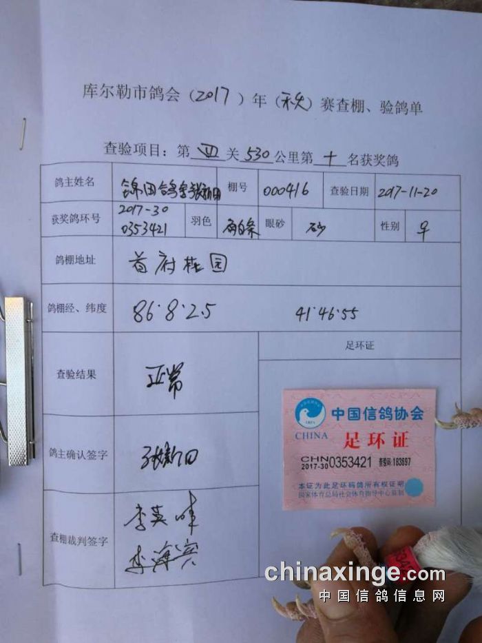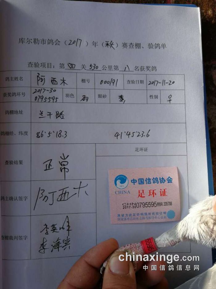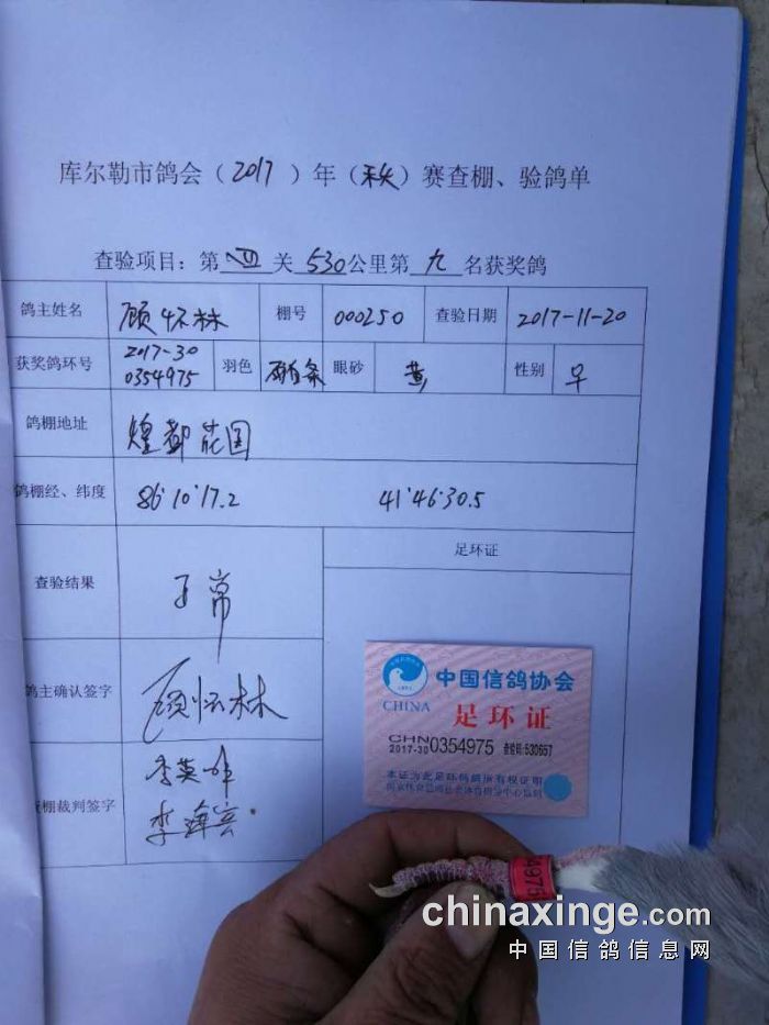 2017年秋季五关鸽王第四关530公里6-10名验棚照片