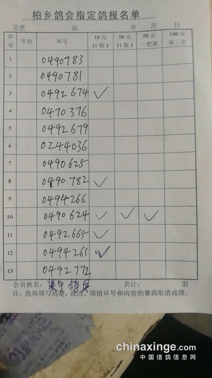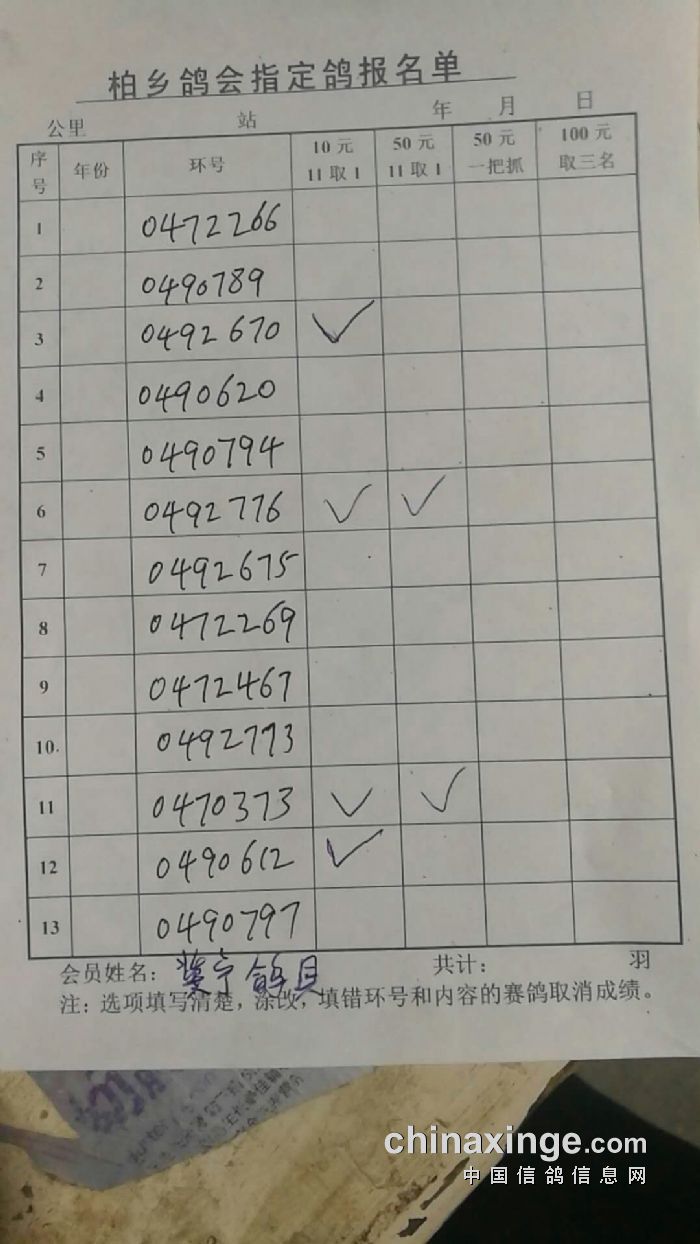 柏乡鸽会千公里第七名、第八名 冯贞禄