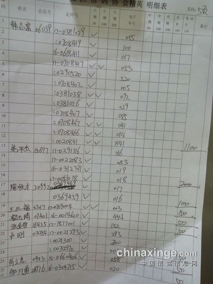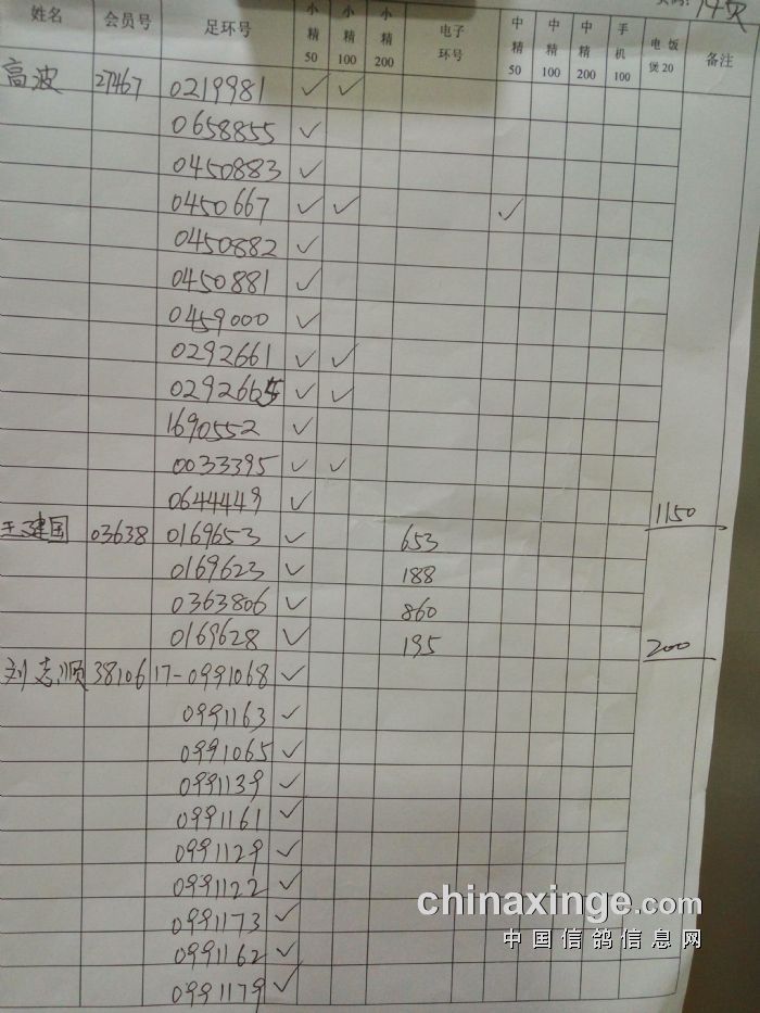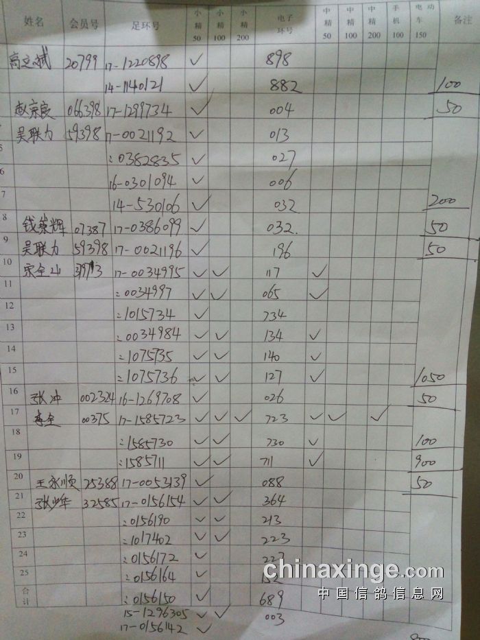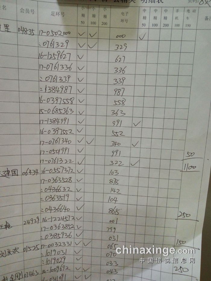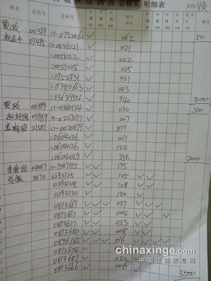 中精英、50元 85羽、100元 35羽、200元 6羽、