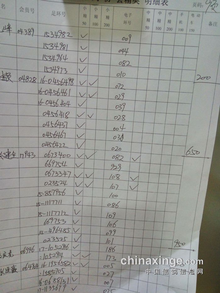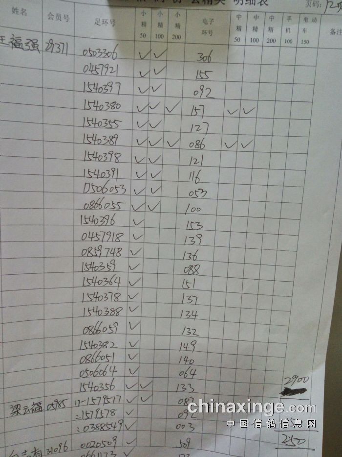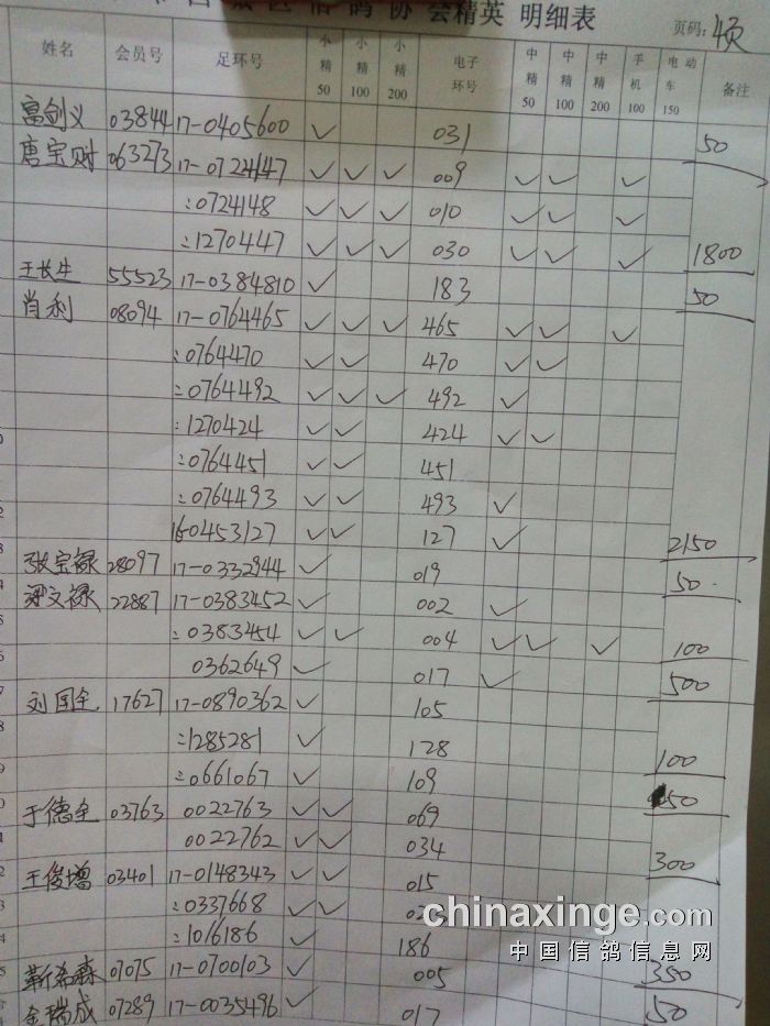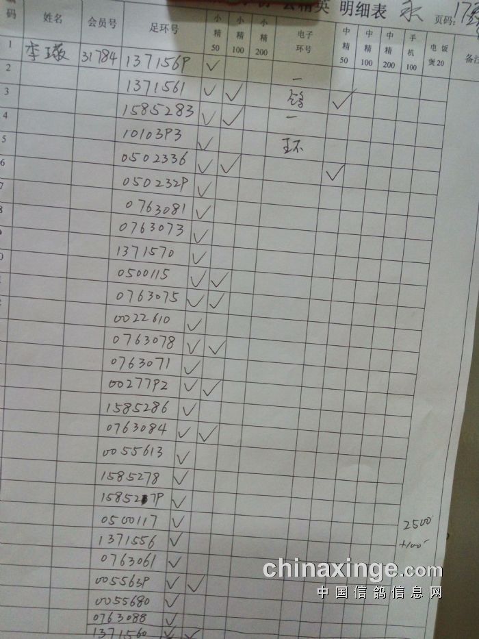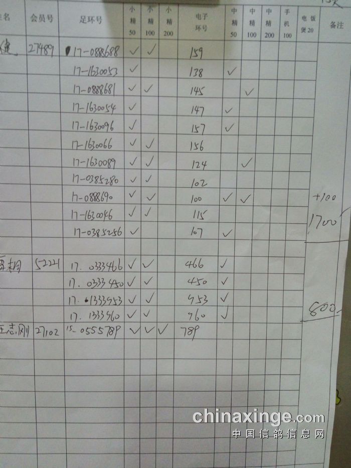 中精英、50元 85羽、100元 35羽、200元 6羽、