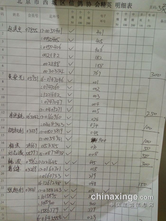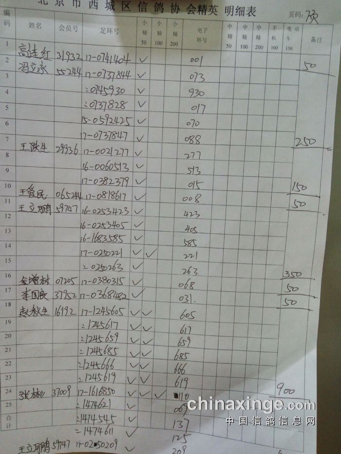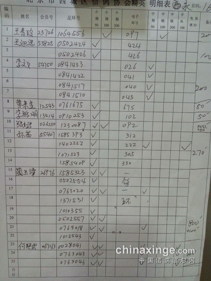 西城第八届“跨双年度最佳鸽舍、最佳鸽手”秋季积分光荣榜排名