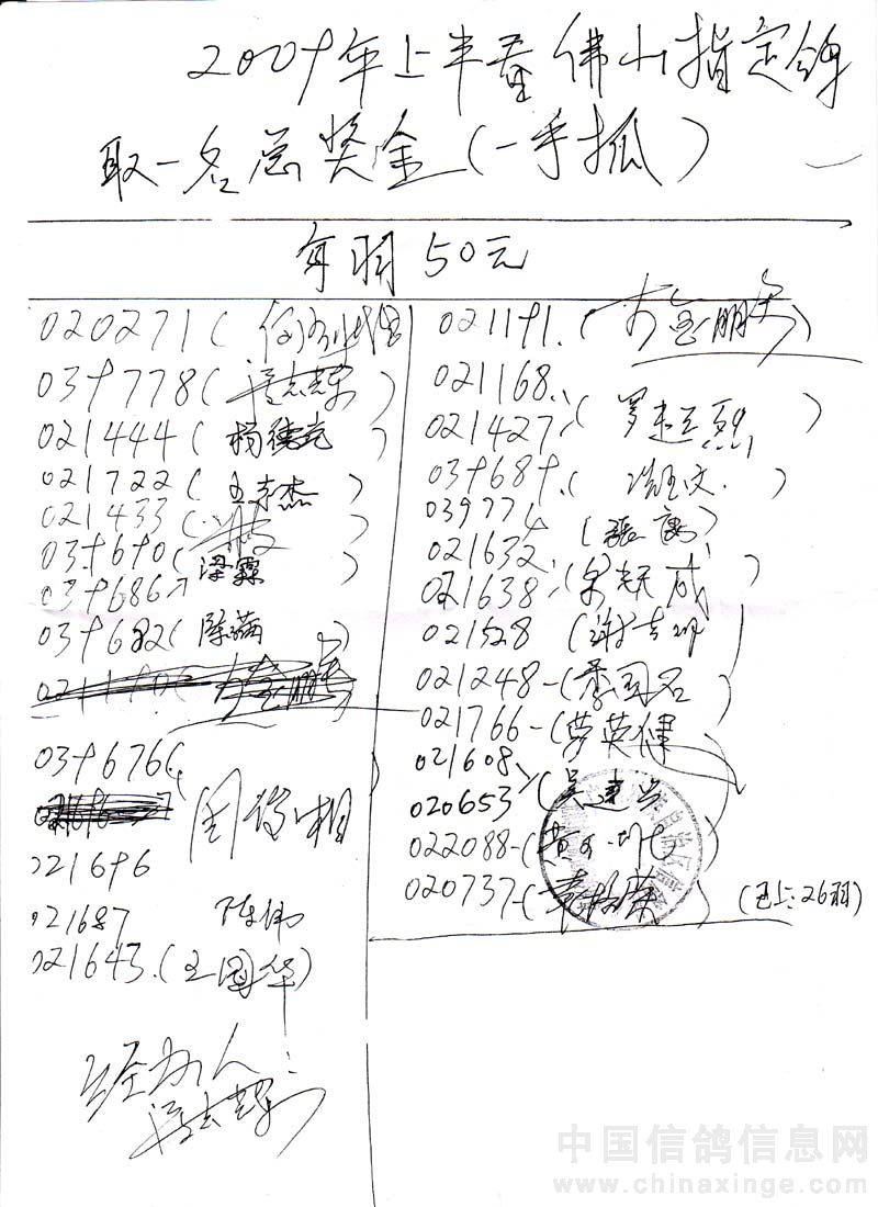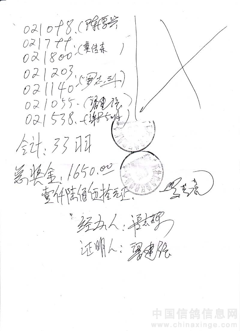 广西北海市信鸽协会2009年上半年50元指定鸽名单
