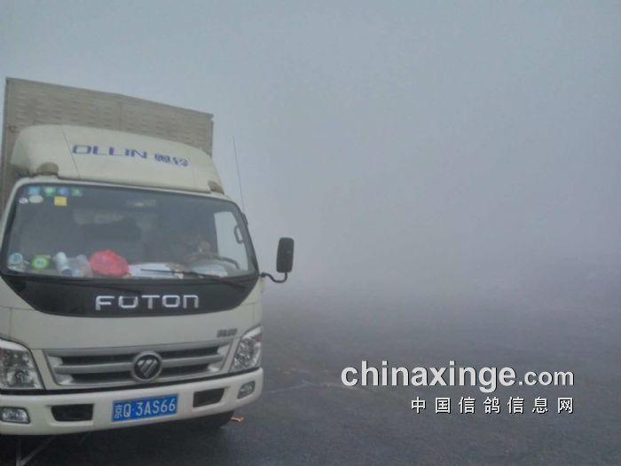 西城鸽会训放车上 因雾大,车在雄县收费站等待中