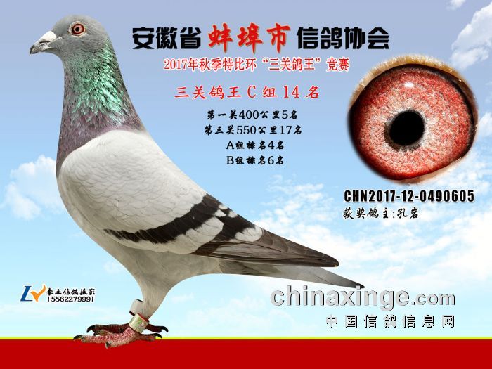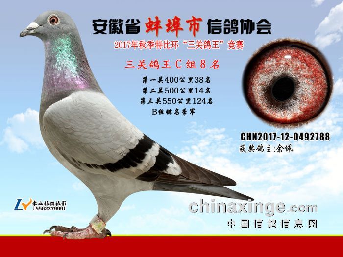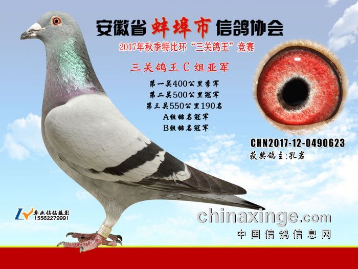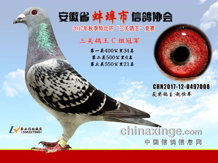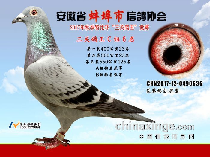 2017年蚌埠鸽协在广大会员的拥护支持下,各项竞赛活动如期顺利完成,尤其是季秋特比环“三关鸽王”赛在艰难的放飞环境下,各关赛如期司放,A组、B组、C组“三关鸽王”均已报满。按照《蚌埠市信鸽协会2017年秋季特比环三关鸽王竞赛规程》的相关内容,特比环“三关鸽王”获奖鸽拍卖会正在紧锣密鼓筹备之中,现将参加拍卖的“三关鸽王”获奖鸽靓照陆续公布给扩大鸽友,供大家择选,先睹为快。
