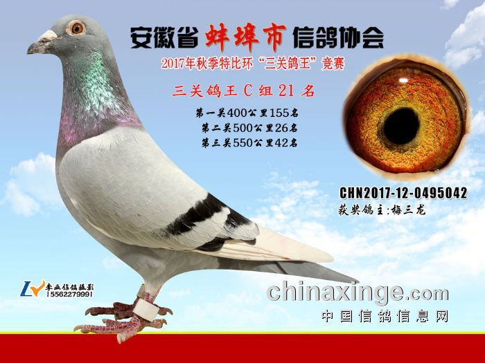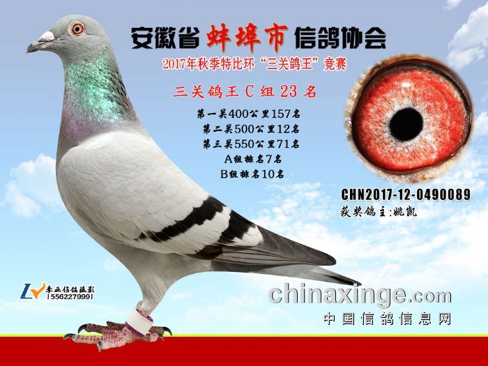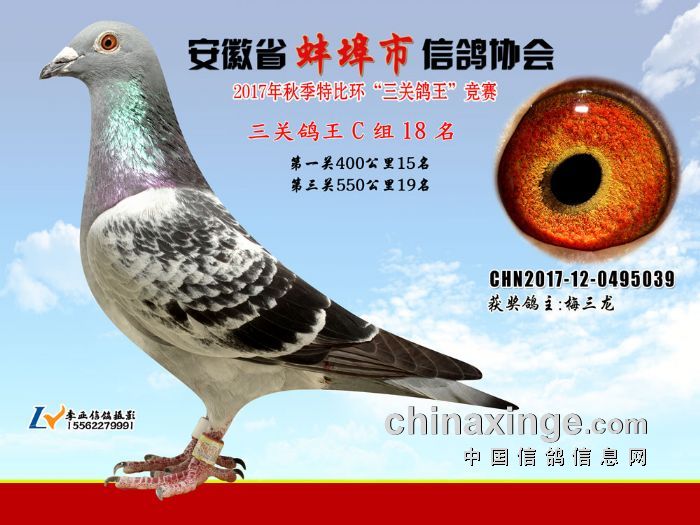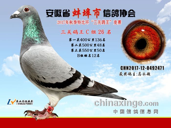 2017年蚌埠鸽协在广大会员的拥护支持下,各项竞赛活动如期顺利完成,尤其是季秋特比环“三关鸽王”赛在艰难的放飞环境下,各关赛如期司放,A组、B组、C组“三关鸽王”均已报满。按照《蚌埠市信鸽协会2017年秋季特比环三关鸽王竞赛规程》的相关内容,特比环“三关鸽王”获奖鸽拍卖会正在紧锣密鼓筹备之中,现将参加拍卖的“三关鸽王”获奖鸽靓照陆续公布给扩大鸽友,供大家择选,先睹为快。