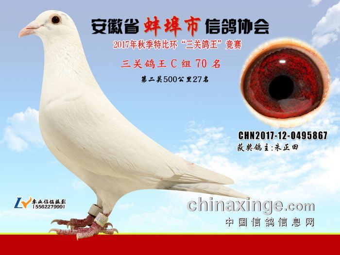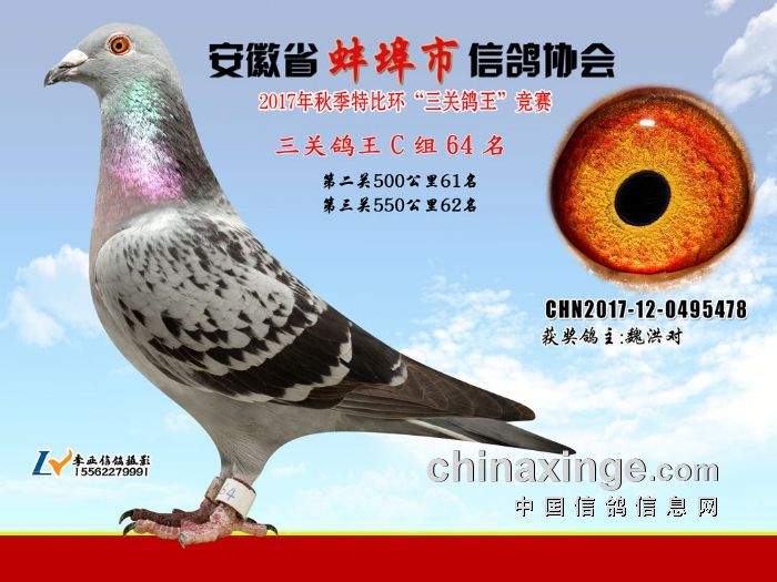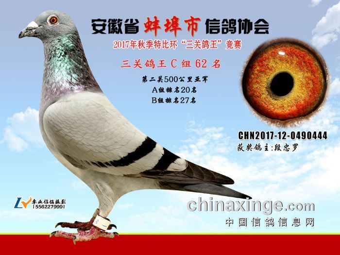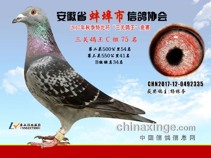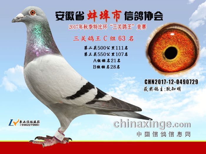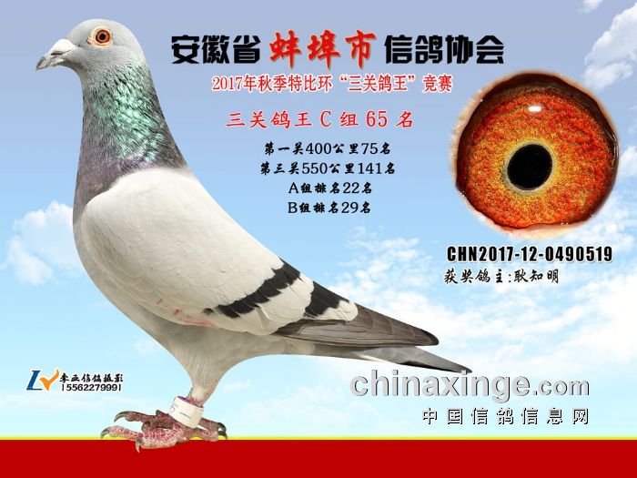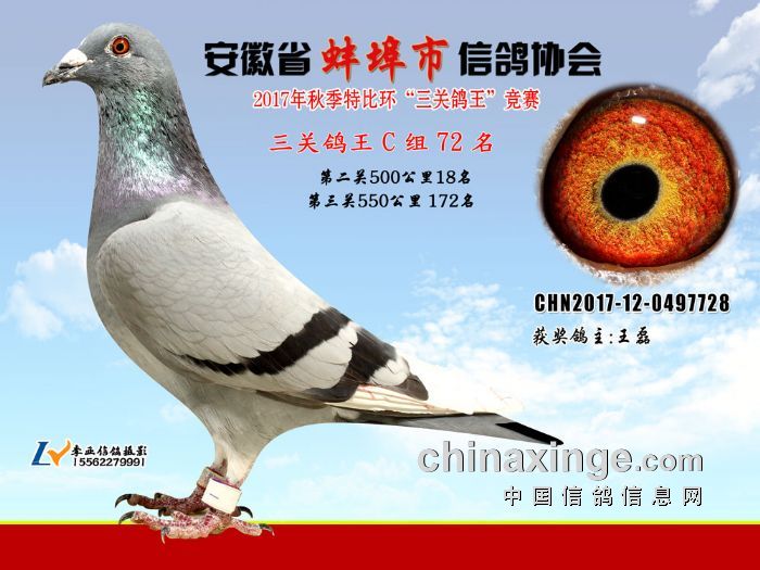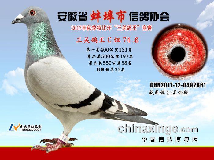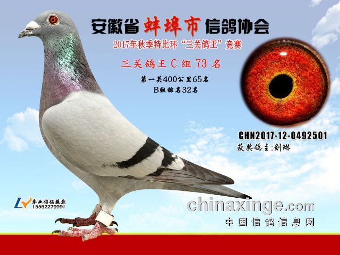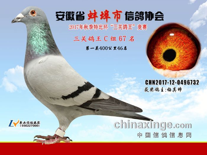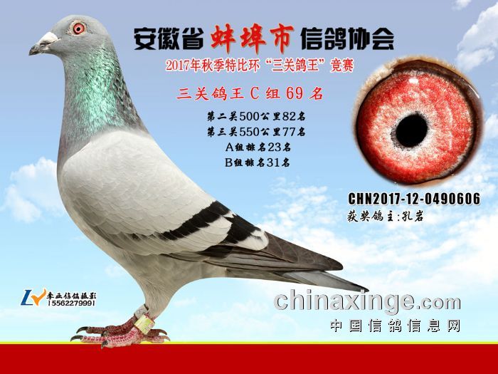 2017年蚌埠鸽协在广大会员的拥护支持下,各项竞赛活动如期顺利完成,尤其是季秋特比环“三关鸽王”赛在艰难的放飞环境下,各关赛如期司放,A组、B组、C组“三关鸽王”均已报满。按照《蚌埠市信鸽协会2017年秋季特比环三关鸽王竞赛规程》的相关内容,特比环“三关鸽王”获奖鸽拍卖会正在紧锣密鼓筹备之中,现将参加拍卖的“三关鸽王”获奖鸽靓照陆续公布给扩大鸽友,供大家择选,先睹为快。