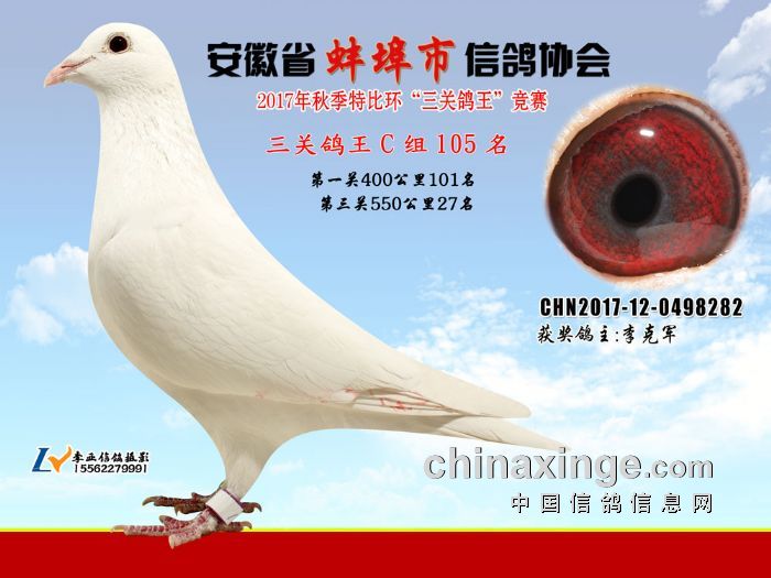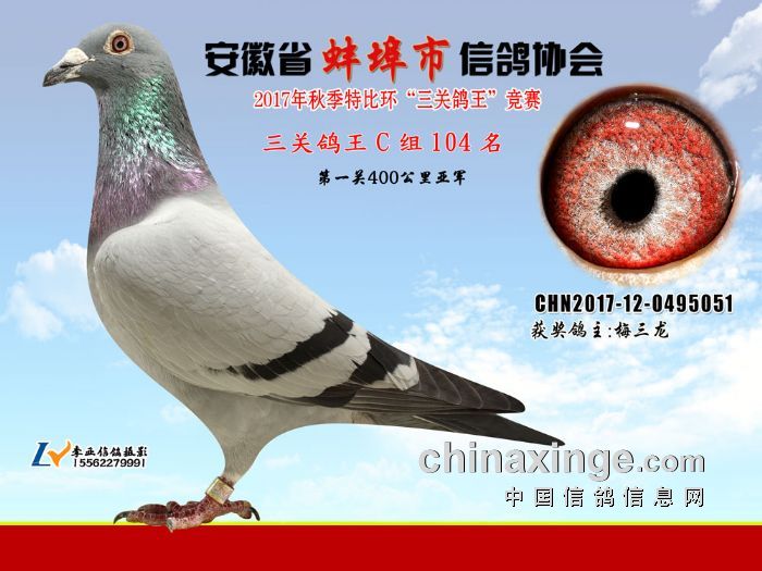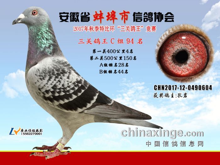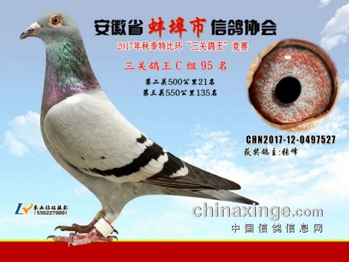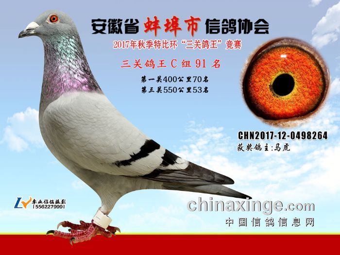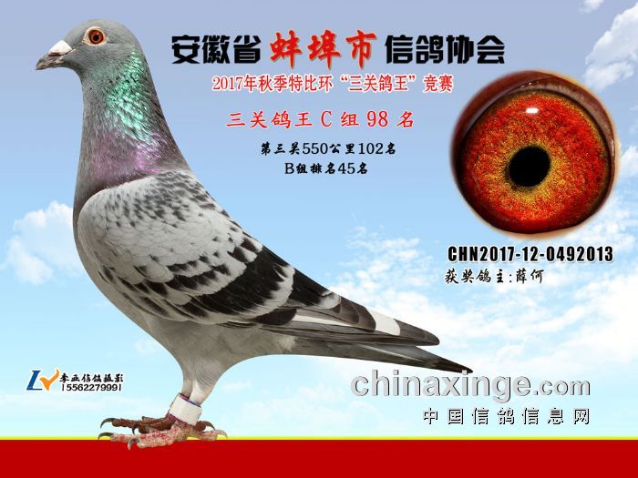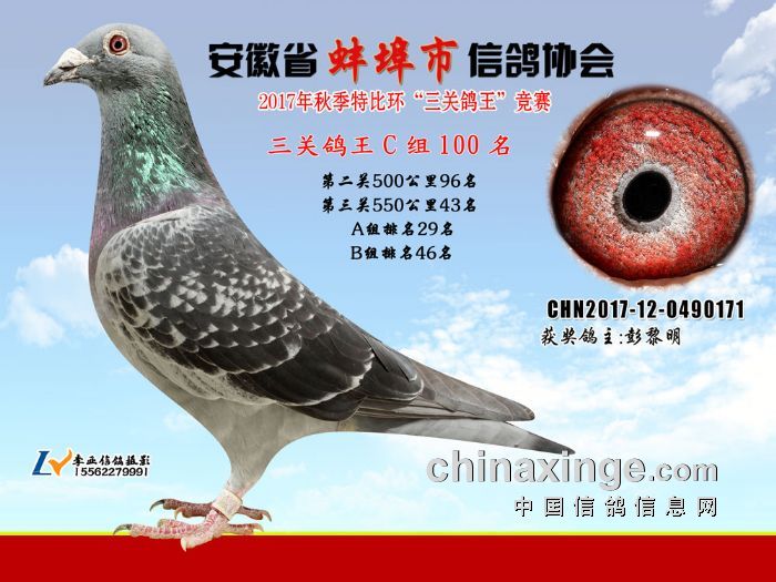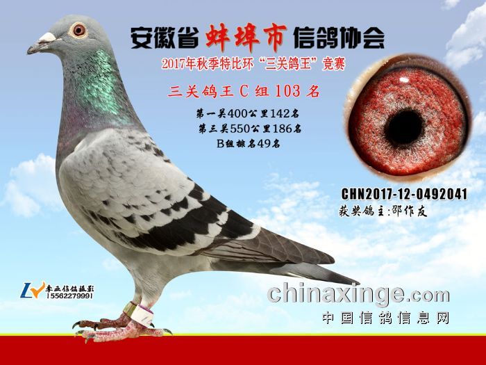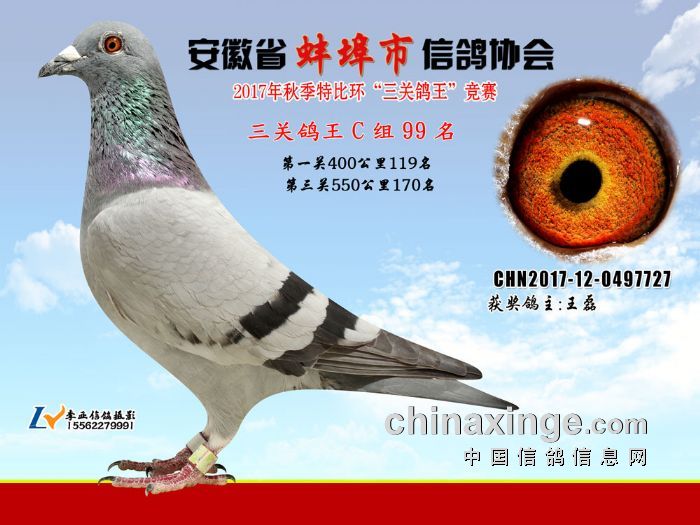 2017年蚌埠鸽协在广大会员的拥护支持下,各项竞赛活动如期顺利完成,尤其是季秋特比环“三关鸽王”赛在艰难的放飞环境下,各关赛如期司放,A组、B组、C组“三关鸽王”均已报满。按照《蚌埠市信鸽协会2017年秋季特比环三关鸽王竞赛规程》的相关内容,特比环“三关鸽王”获奖鸽拍卖会正在紧锣密鼓筹备之中,现将参加拍卖的“三关鸽王”获奖鸽靓照陆续公布给扩大鸽友,供大家择选,先睹为快。