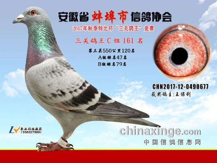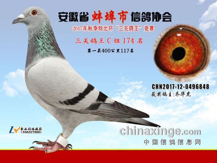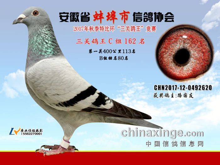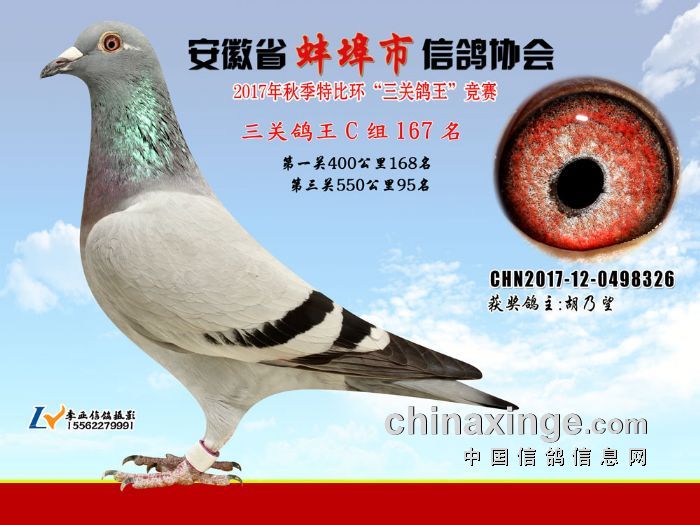 2017年蚌埠鸽协在广大会员的拥护支持下,各项竞赛活动如期顺利完成,尤其是季秋特比环“三关鸽王”赛在艰难的放飞环境下,各关赛如期司放,A组、B组、C组“三关鸽王”均已报满。按照《蚌埠市信鸽协会2017年秋季特比环三关鸽王竞赛规程》的相关内容,特比环“三关鸽王”获奖鸽拍卖会正在紧锣密鼓筹备之中,现将参加拍卖的“三关鸽王”获奖鸽靓照陆续公布给扩大鸽友,供大家择选,先睹为快。