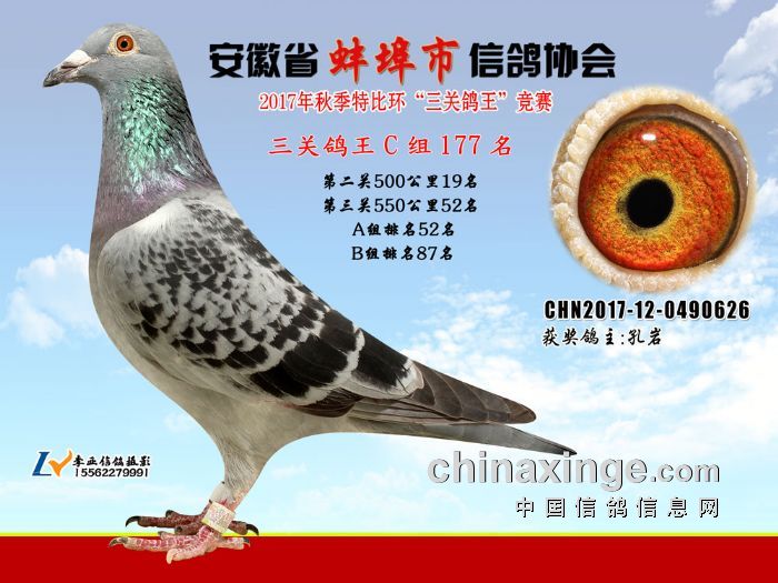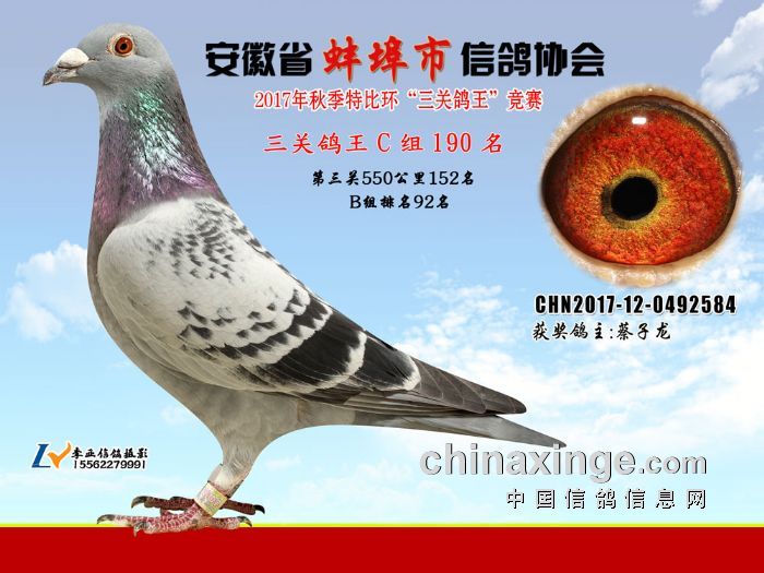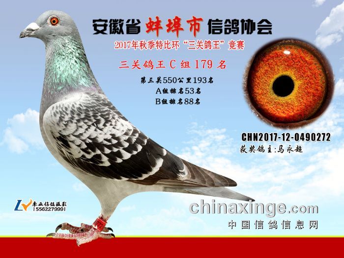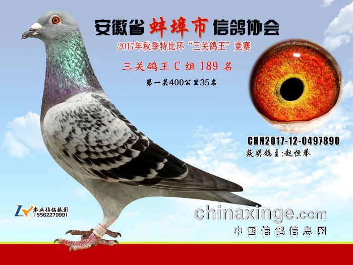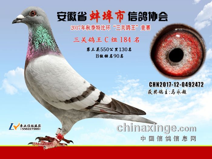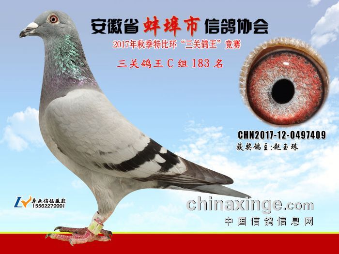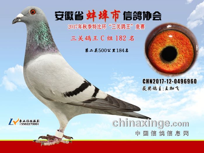 2017年蚌埠鸽协在广大会员的拥护支持下,各项竞赛活动如期顺利完成,尤其是季秋特比环“三关鸽王”赛在艰难的放飞环境下,各关赛如期司放,A组、B组、C组“三关鸽王”均已报满。按照《蚌埠市信鸽协会2017年秋季特比环三关鸽王竞赛规程》的相关内容,特比环“三关鸽王”获奖鸽拍卖会正在紧锣密鼓筹备之中,现将参加拍卖的“三关鸽王”获奖鸽靓照陆续公布给扩大鸽友,供大家择选,先睹为快。