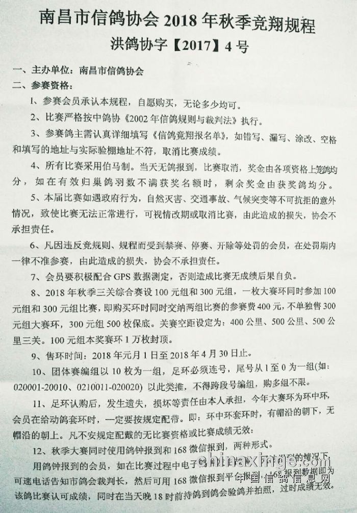 南昌市信鸽协会2025年春季大赛竟翔规程