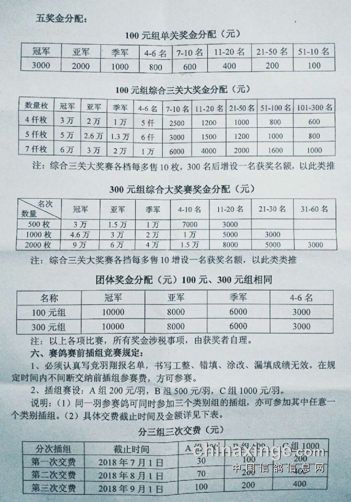 南昌市信鸽协会春季三关鸽王综合赛成绩
