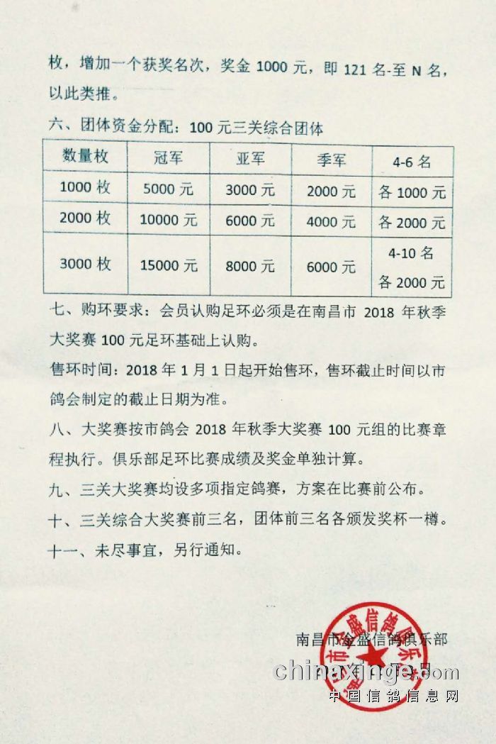 南昌市信鸽协会春季三关鸽王综合赛成绩