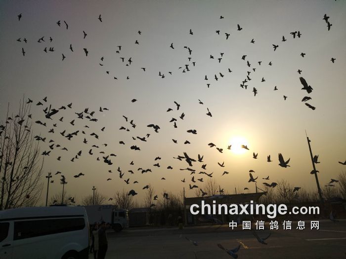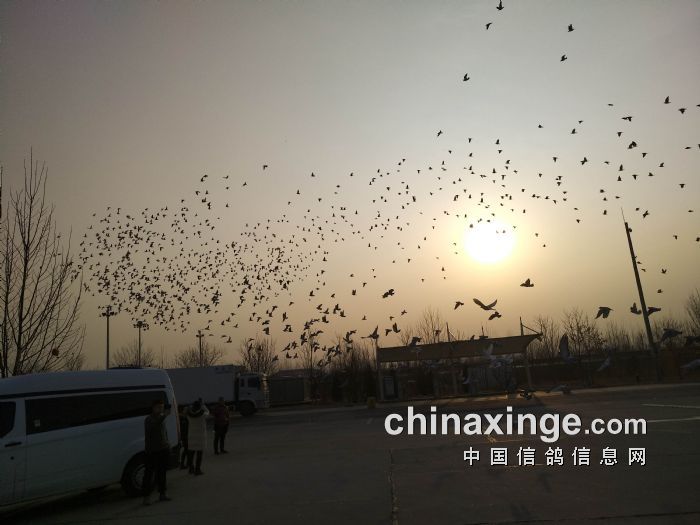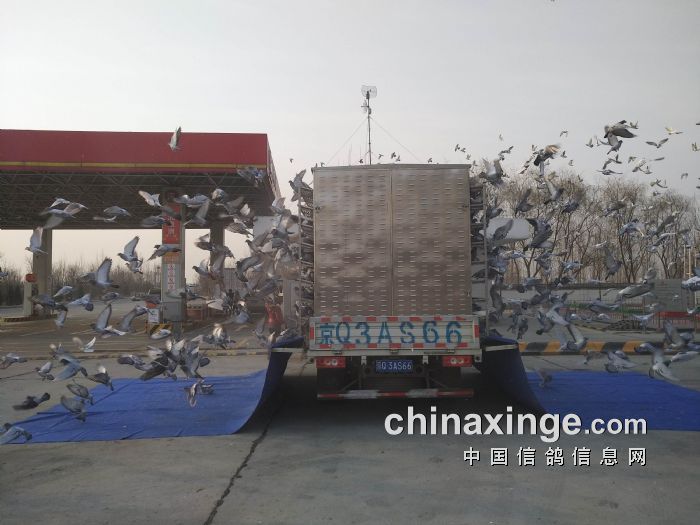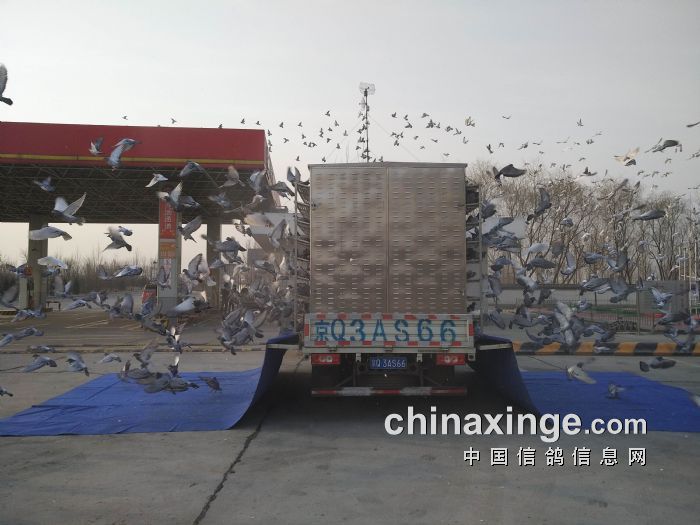 西城鸽会今早100公里训放7点25分雄县服务区开笼
