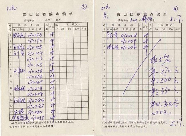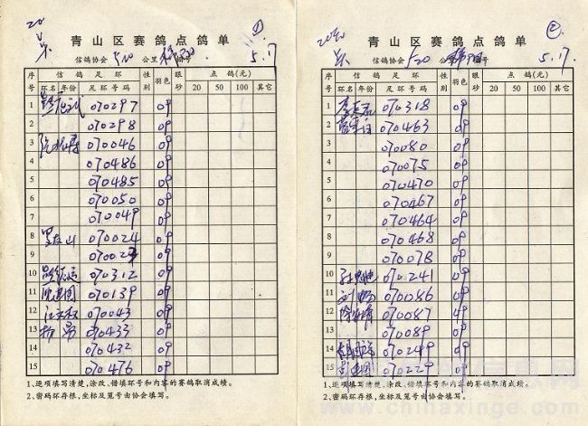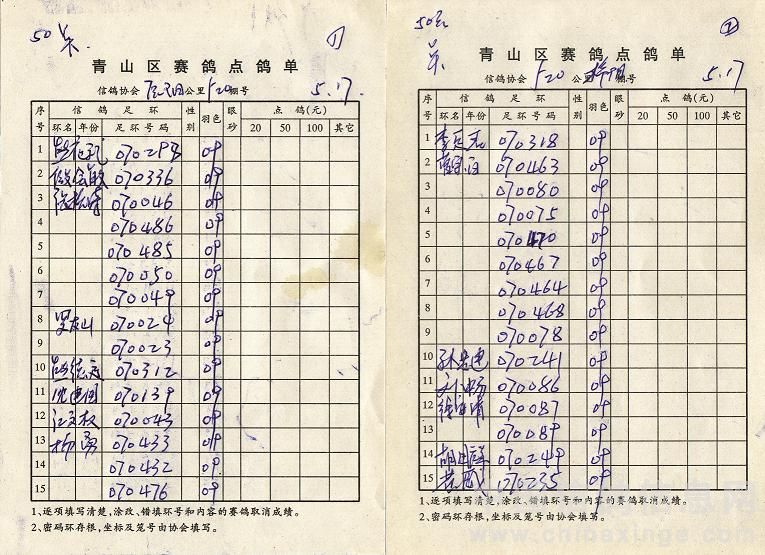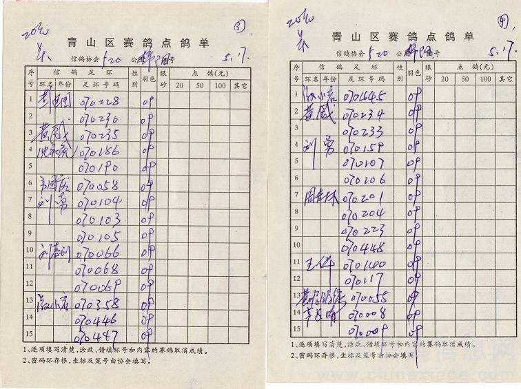 武汉市洪山区信鸽协会2009年510公里原阳竞赛指定鸽清单
