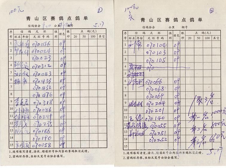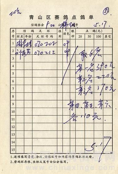 武汉市洪山区信鸽协会漯河竞赛取消名次初榜