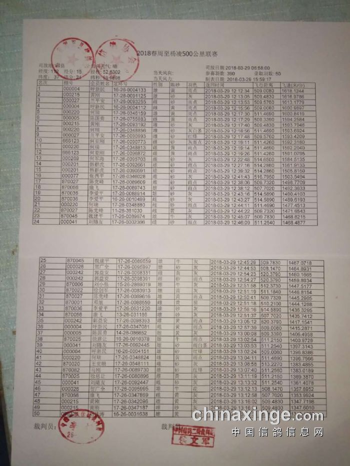杨凌信鸽协会国家赛成绩