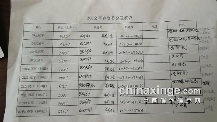 2018年春季300公里指定鸽成绩(无异议,三日后生效)